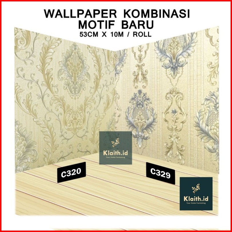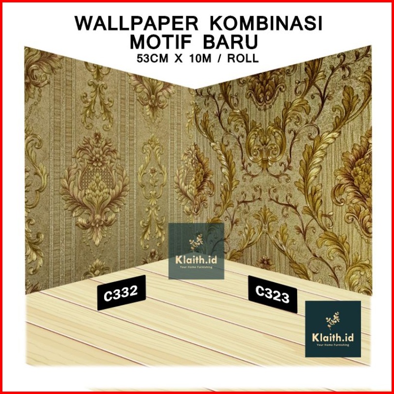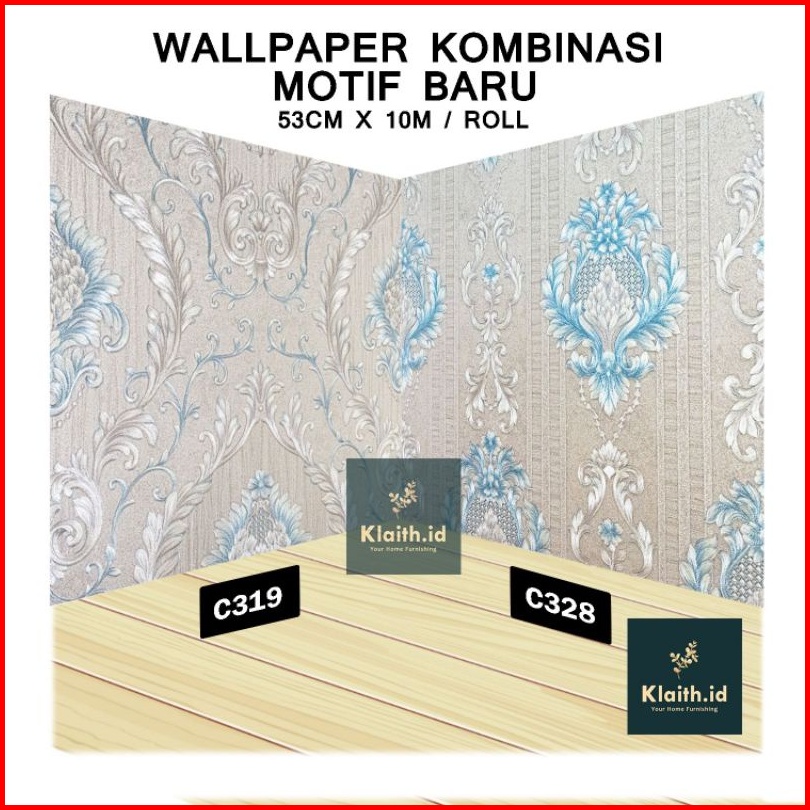 Wallpaper Dinding Motif Baru Kombinasi Vinyl Tebal Bertekstur Emboss C319 C328