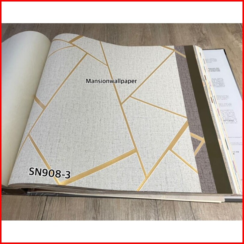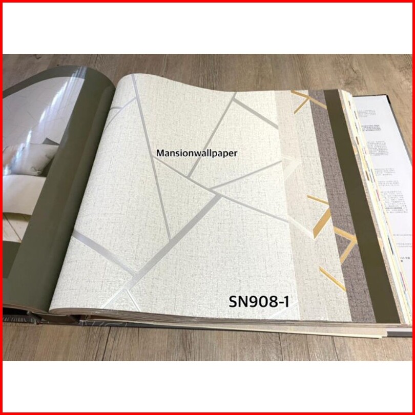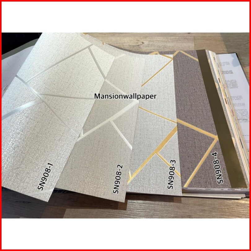 Wallpaper Dinding Geometri Abstrak List Putih Abu Silver