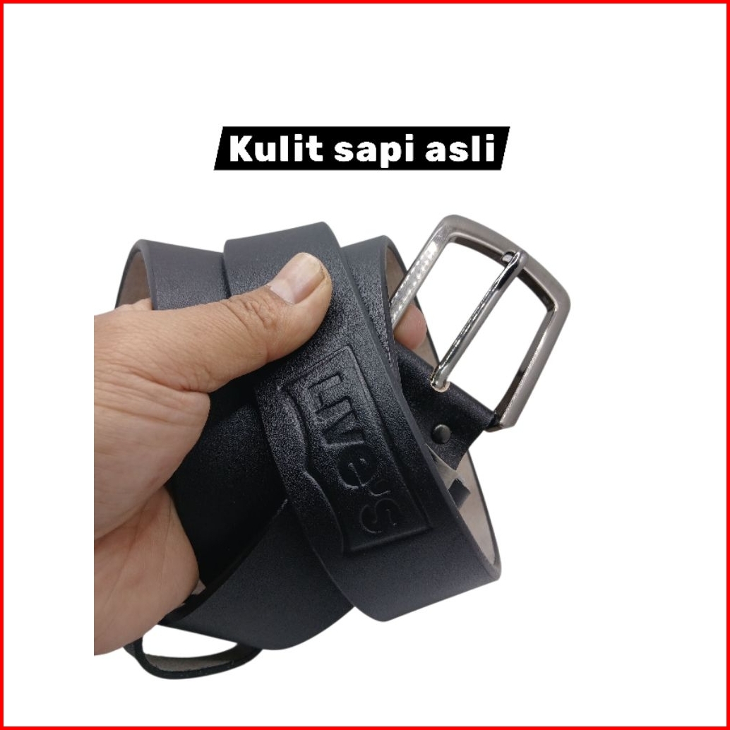 Ikat Pria Kulit Badan Embos Model Kepala Jarum Sabuk Kulit Sapi Asli