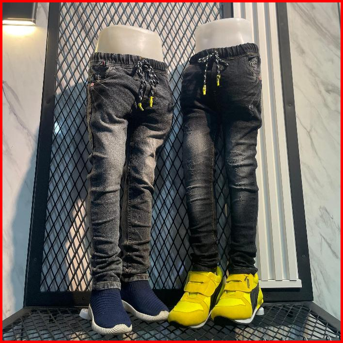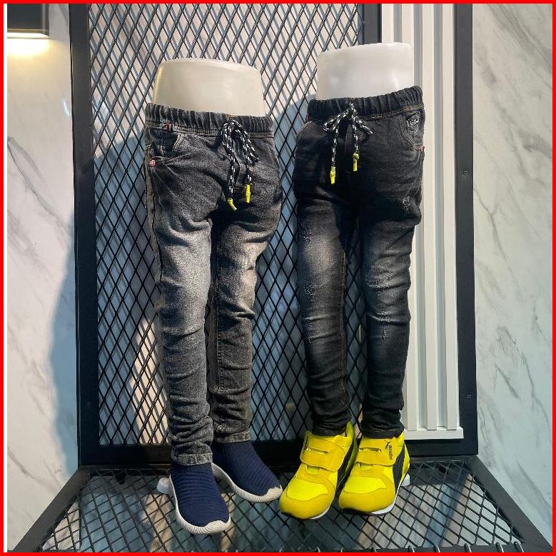 Celana Panjang Jeans Stretch Anak Laki-laki Usia 4 - 12 Tahun Model Tackling Dan Sobek Distro Gaul Kekinian New Desain F