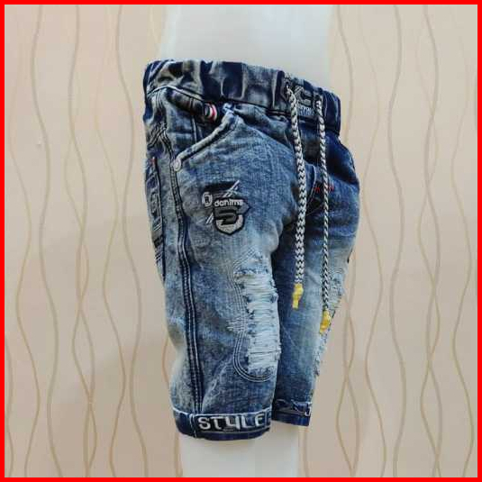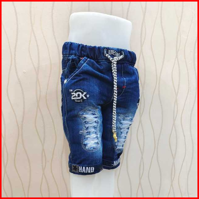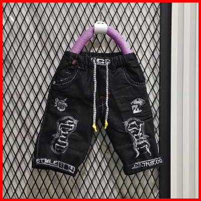 Celana Jeans Pendek Anak Laki-laki Usia 4 - 12 Tahun Bahan Jeans Jins Lepis Denim Model Full Bordir Aplikasi Sobek Gaul