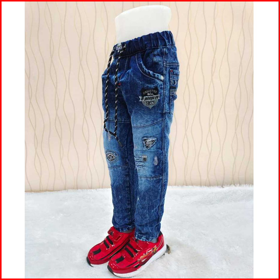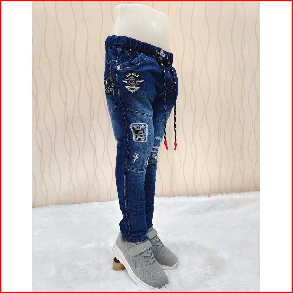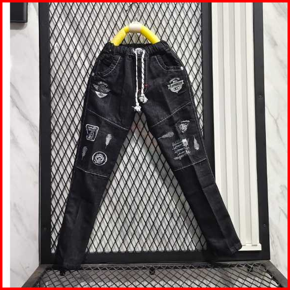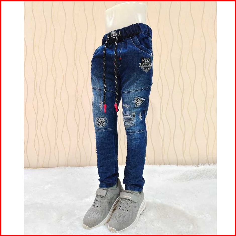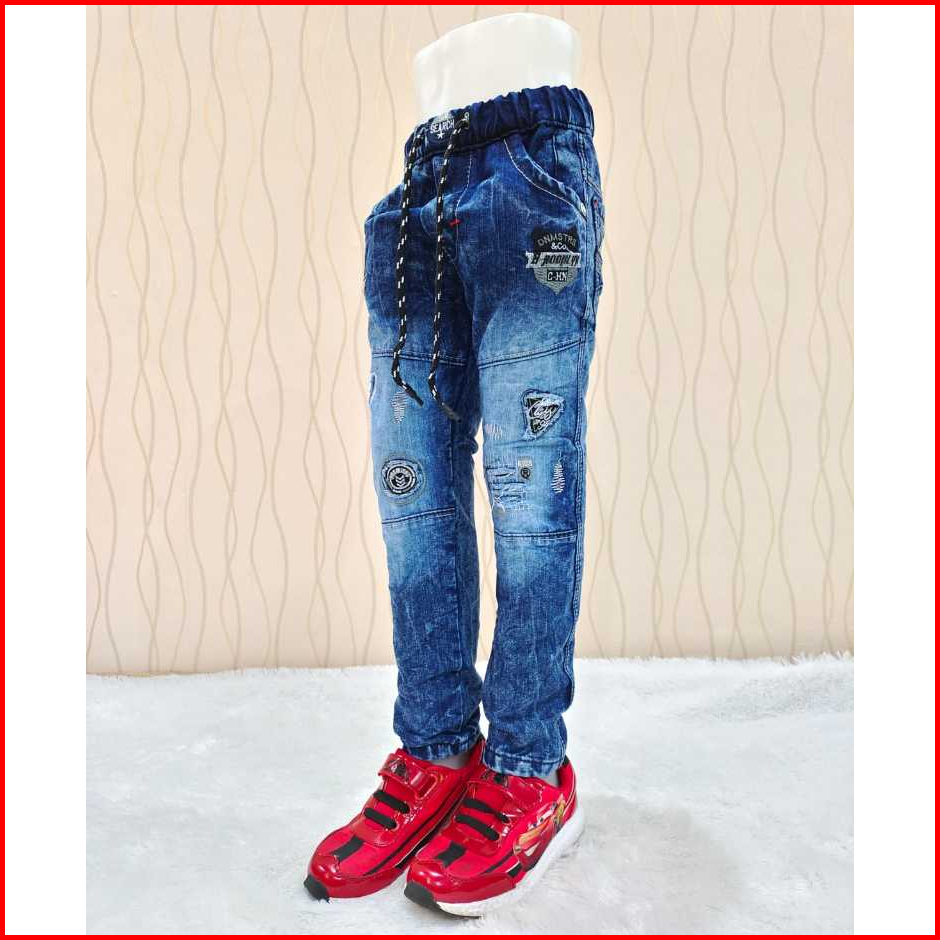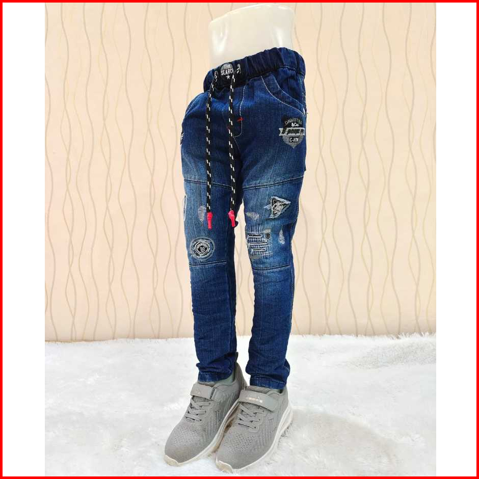 Celana Panjang Jeans Anak Laki-laki Usia 4 - 12 Tahun Bahan Jeans Jins Denim Model Aplikasi Bordir Full Sobek Robek Kere