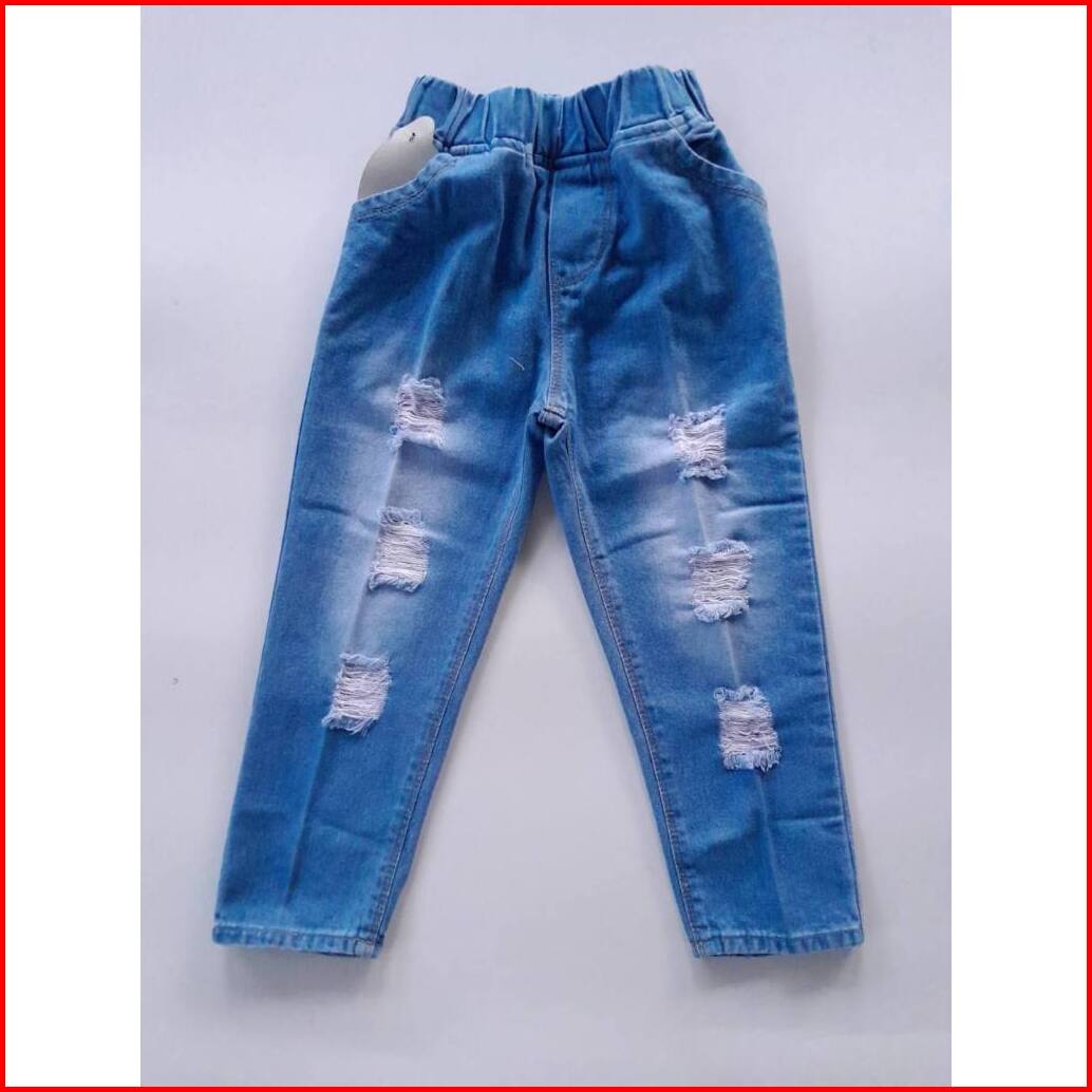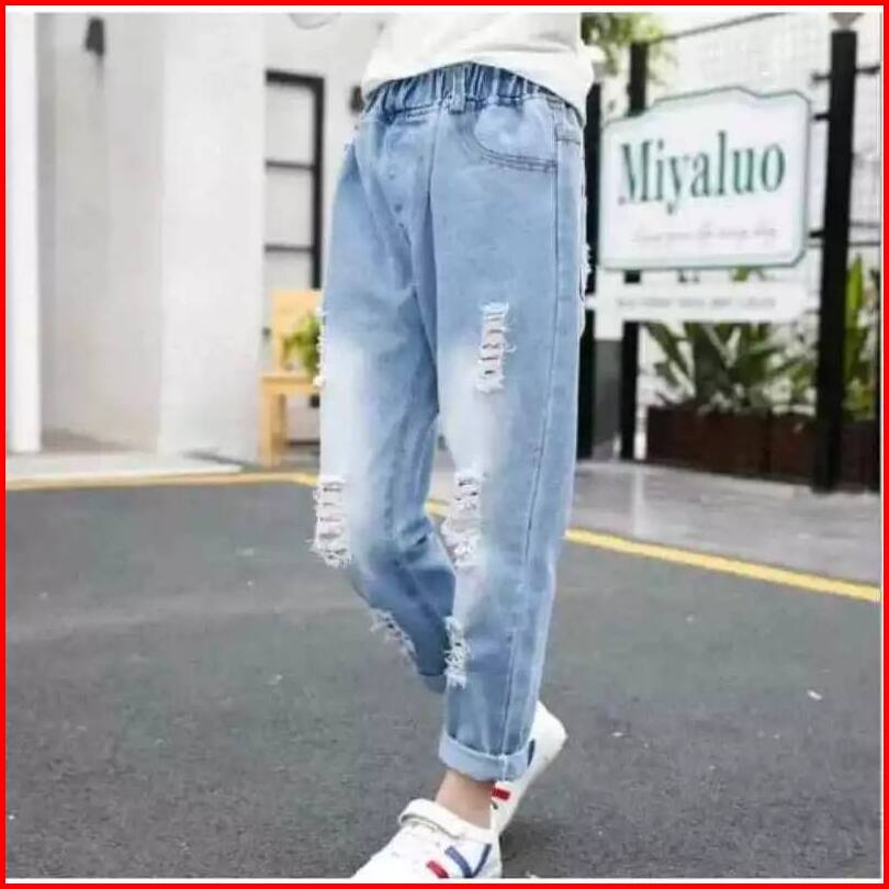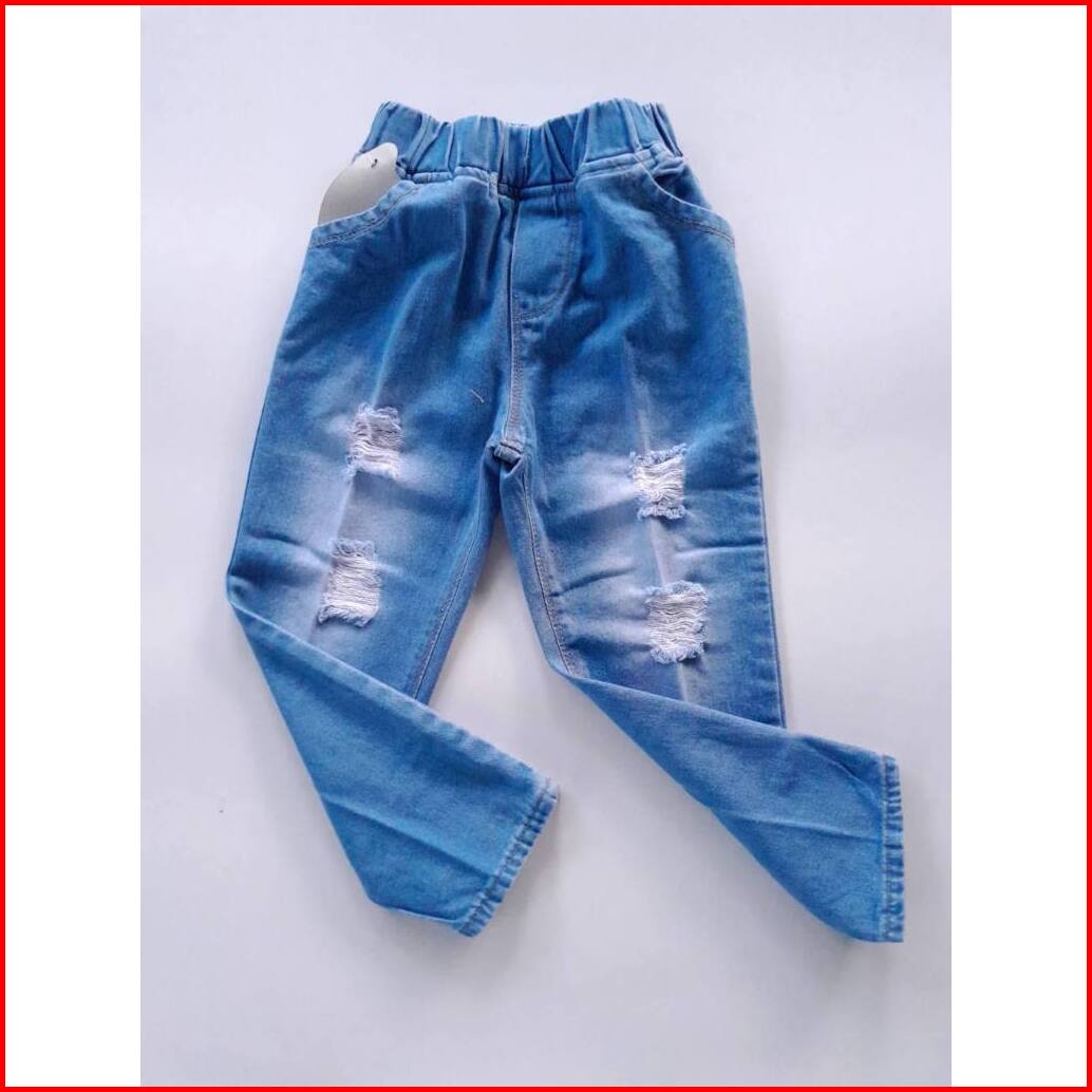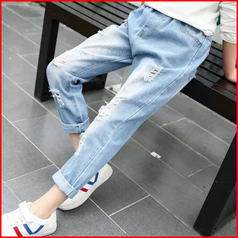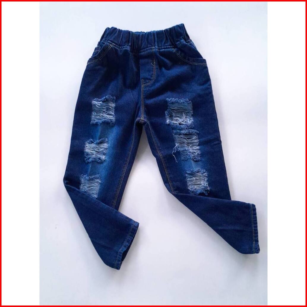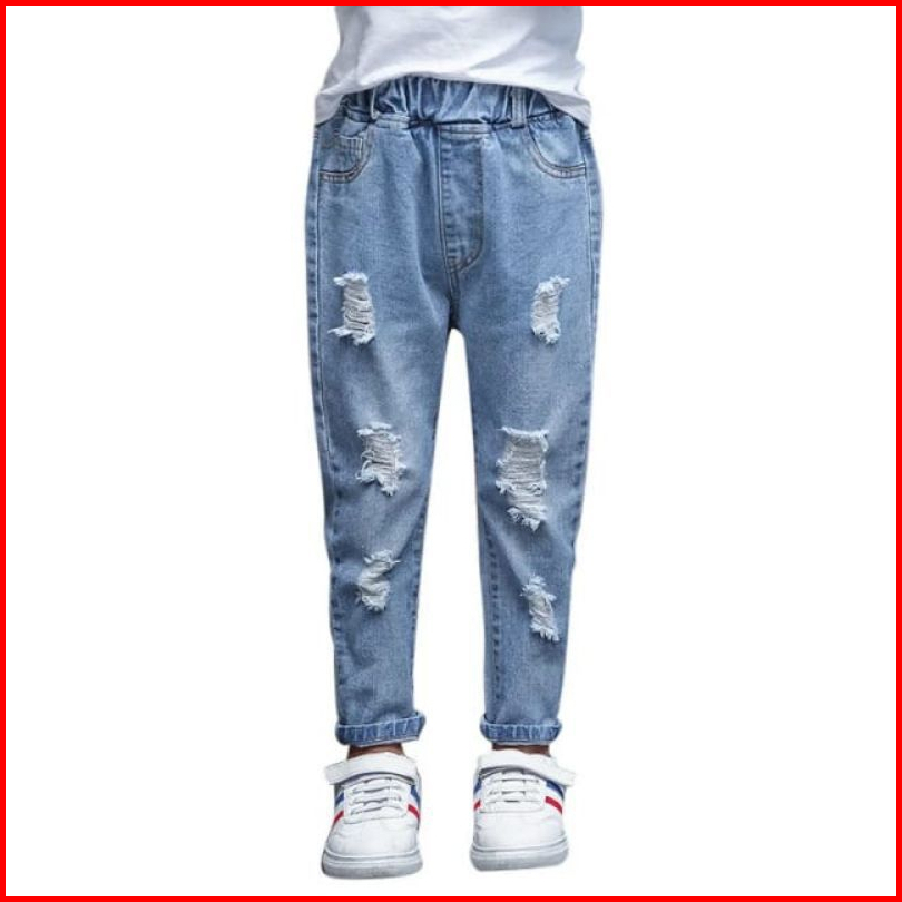 Celana Jeans Panjang Anak Umur 2 - 10 Tahun Laki-laki Perempuan Motif Sobek Ikat Pinggang Karet