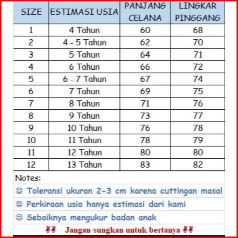 4 tahun, 4-5 tahun, 5 tahun, 6 tahun, 6-7 tahun, 7 tahun, 8 tahun, 9 tahun, 10 tahun, 11 tahun, 12 tahun, 13 tahun