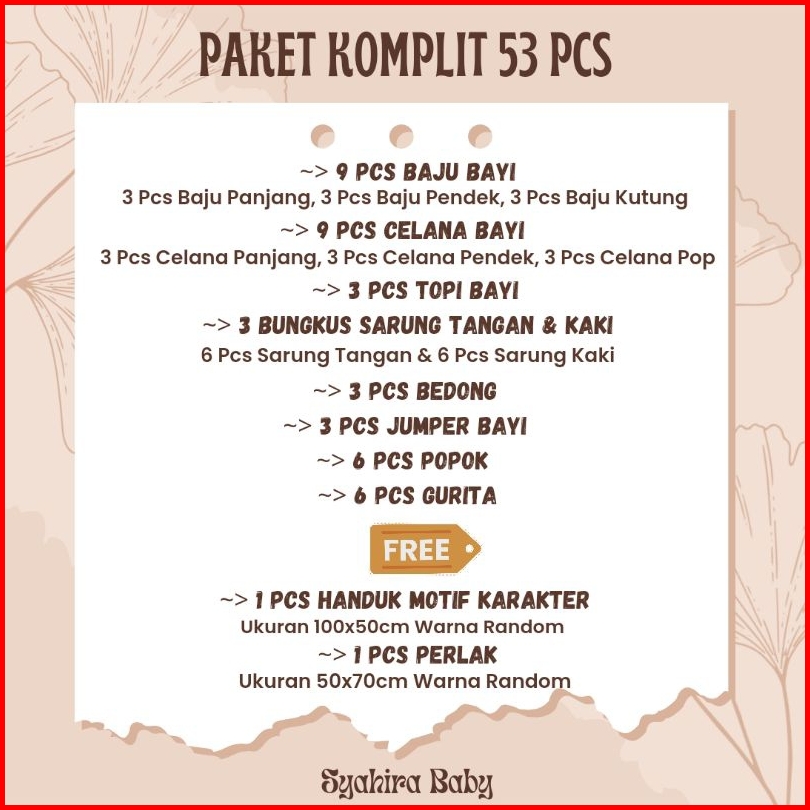 Paket Lengkap 53 Pcs Pakaian Bayi Baru Lahir