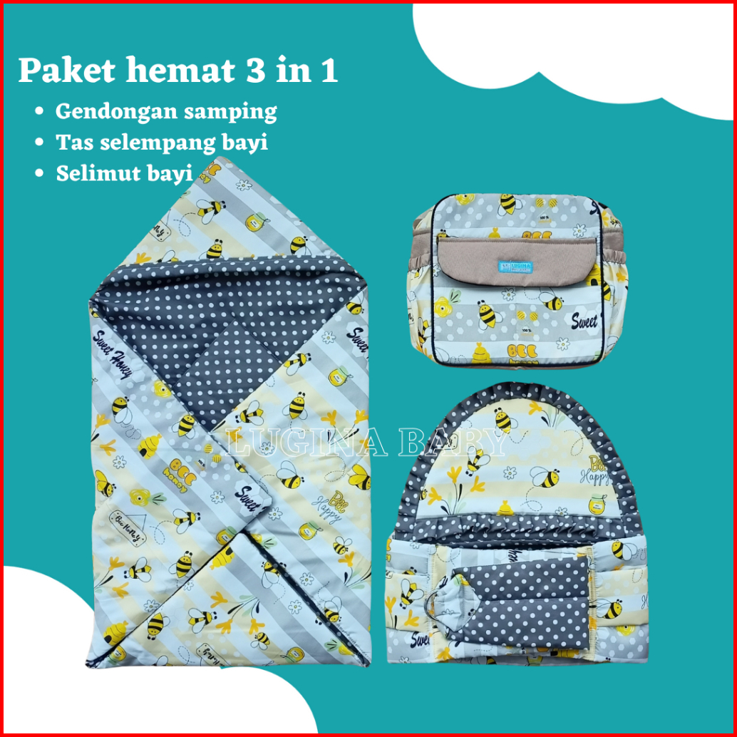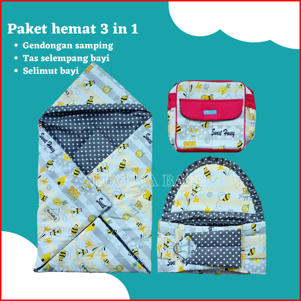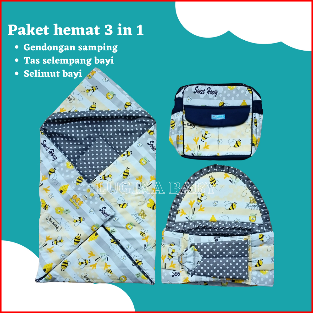 Set 3in1 Gendongan Samping Bayi Tas Bayi Dan Selimut Bayi Honeybee