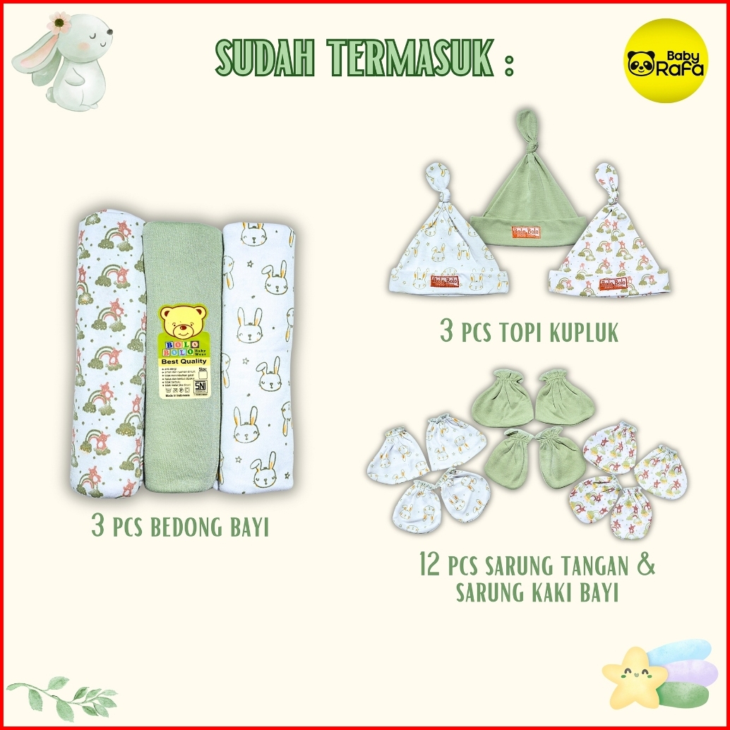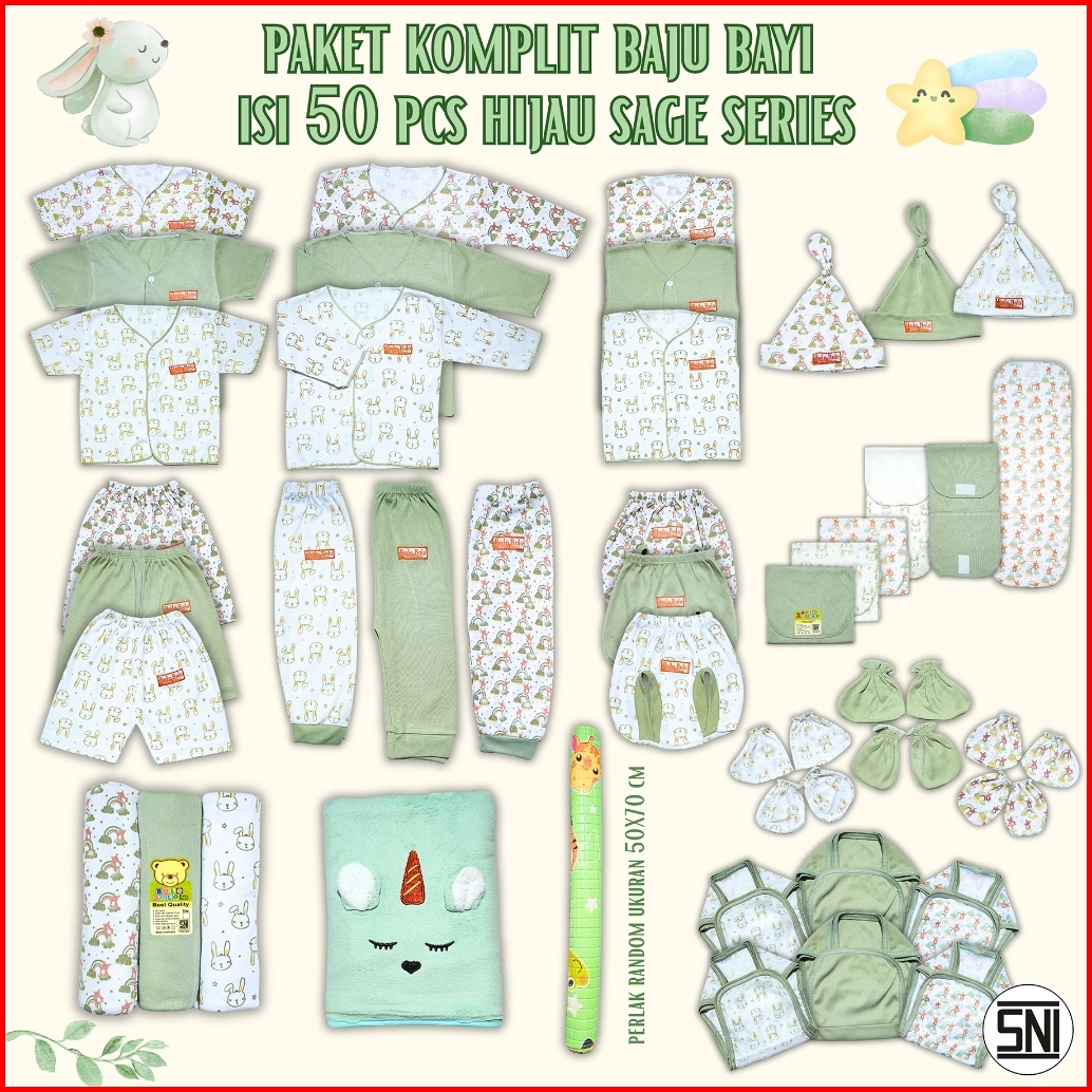 50 Pcs Paket Hemat Bundling Baju Bayi Baru Lahir Setelan Newborn 0 Sd 3 Bulan Serian Hijau Sage