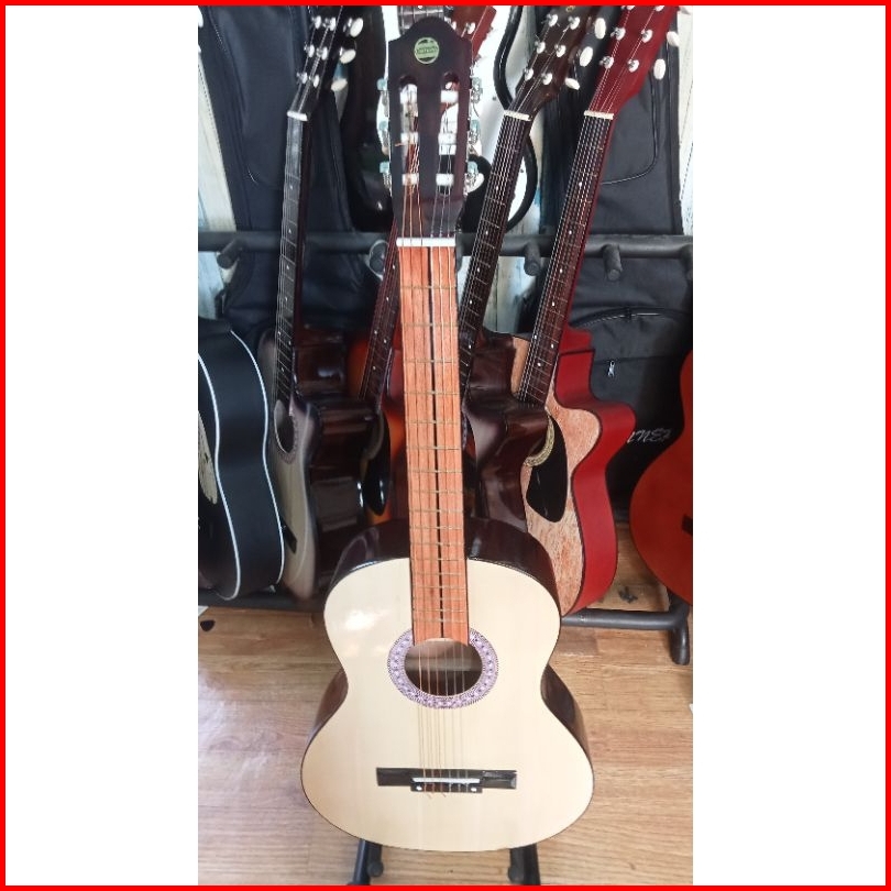 Olshop Banjarmasin-gitar Nylon Osmond Bahan Sungkai Bunyi Mantap Free Senar Cadangan Satu Set