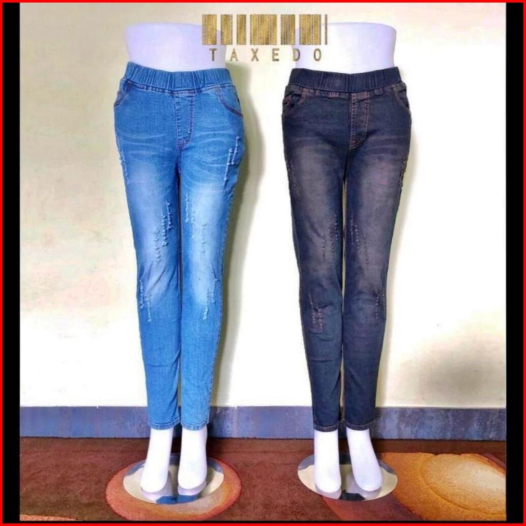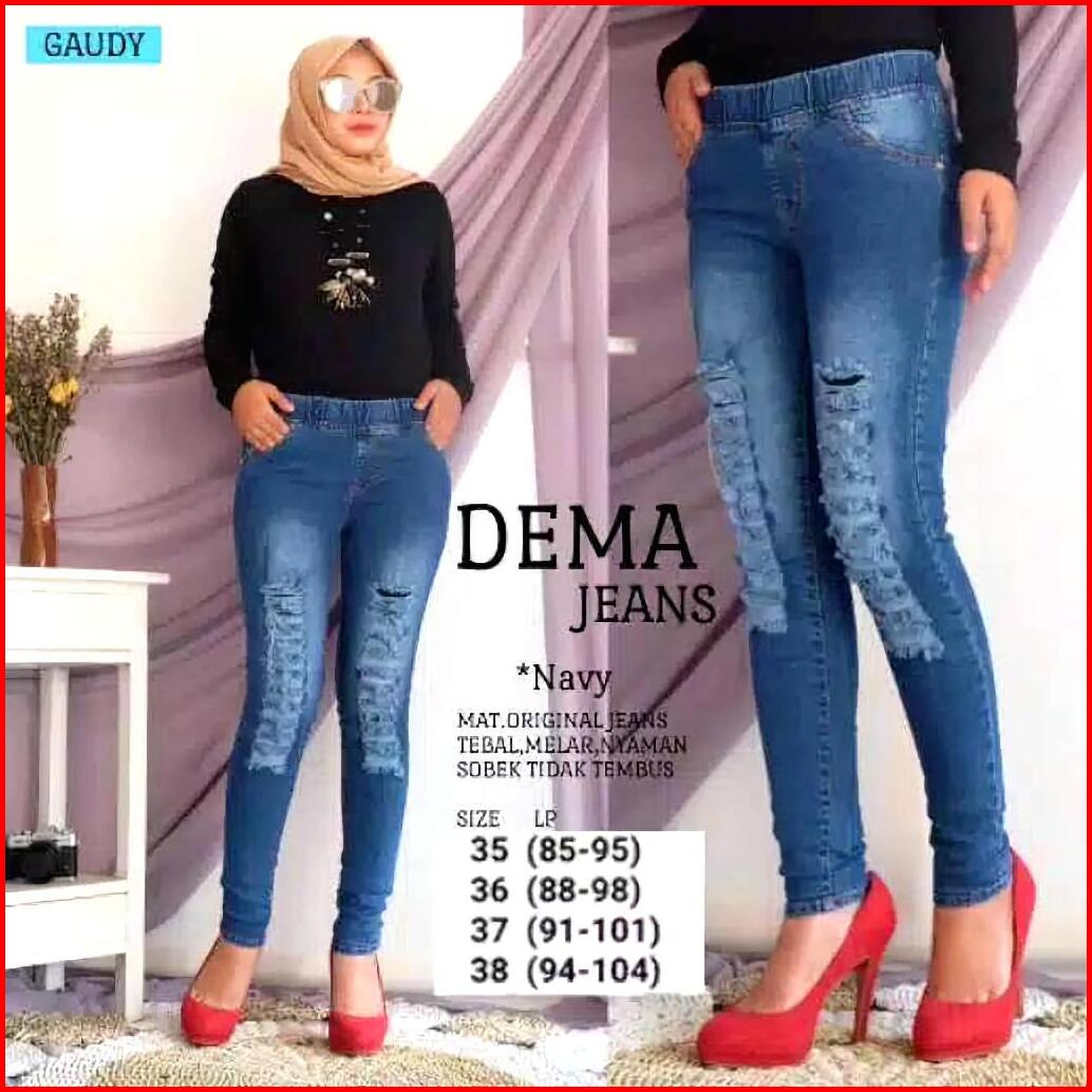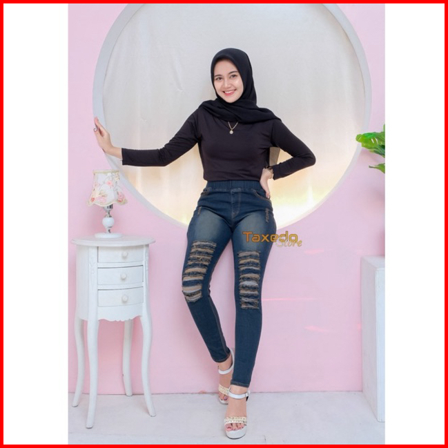 Celana Jeans Wanita Model Sobek Lapis Celana Legging Bahan Streach