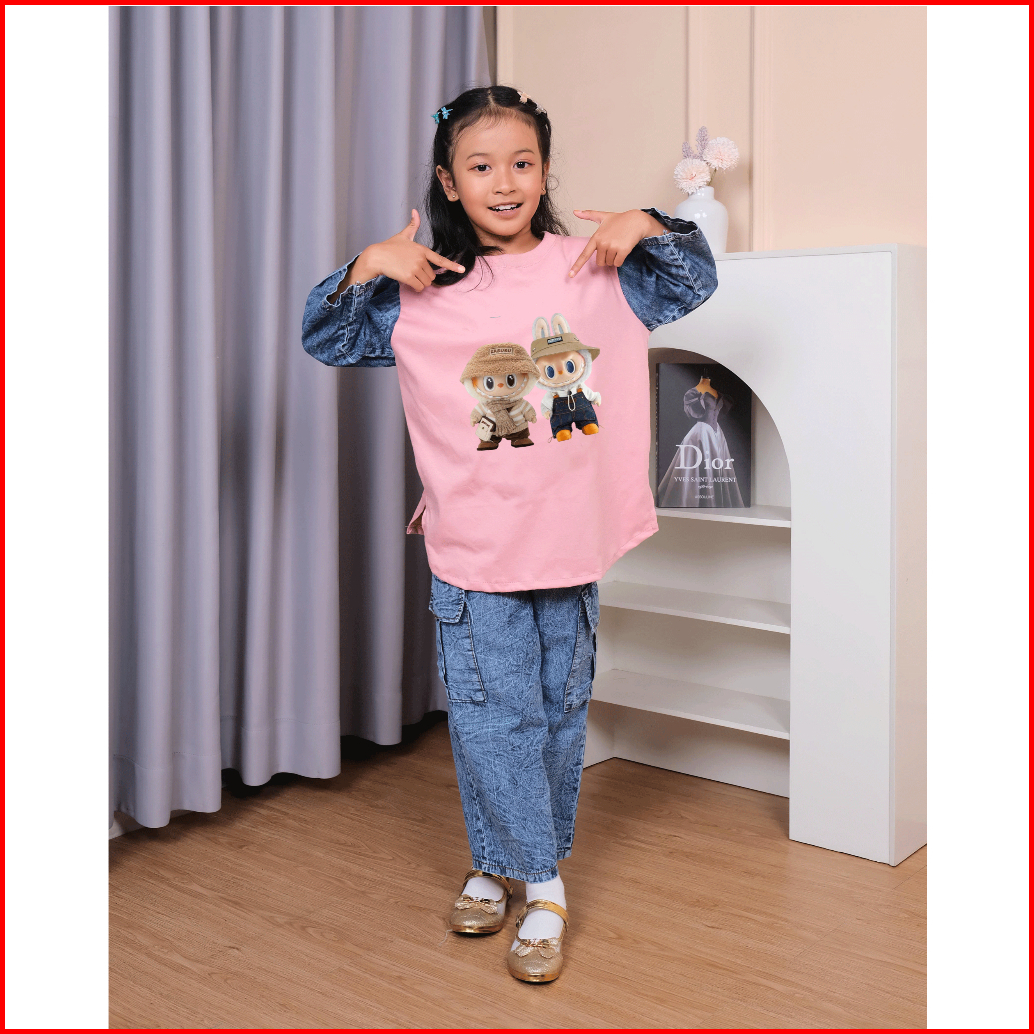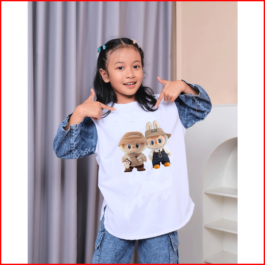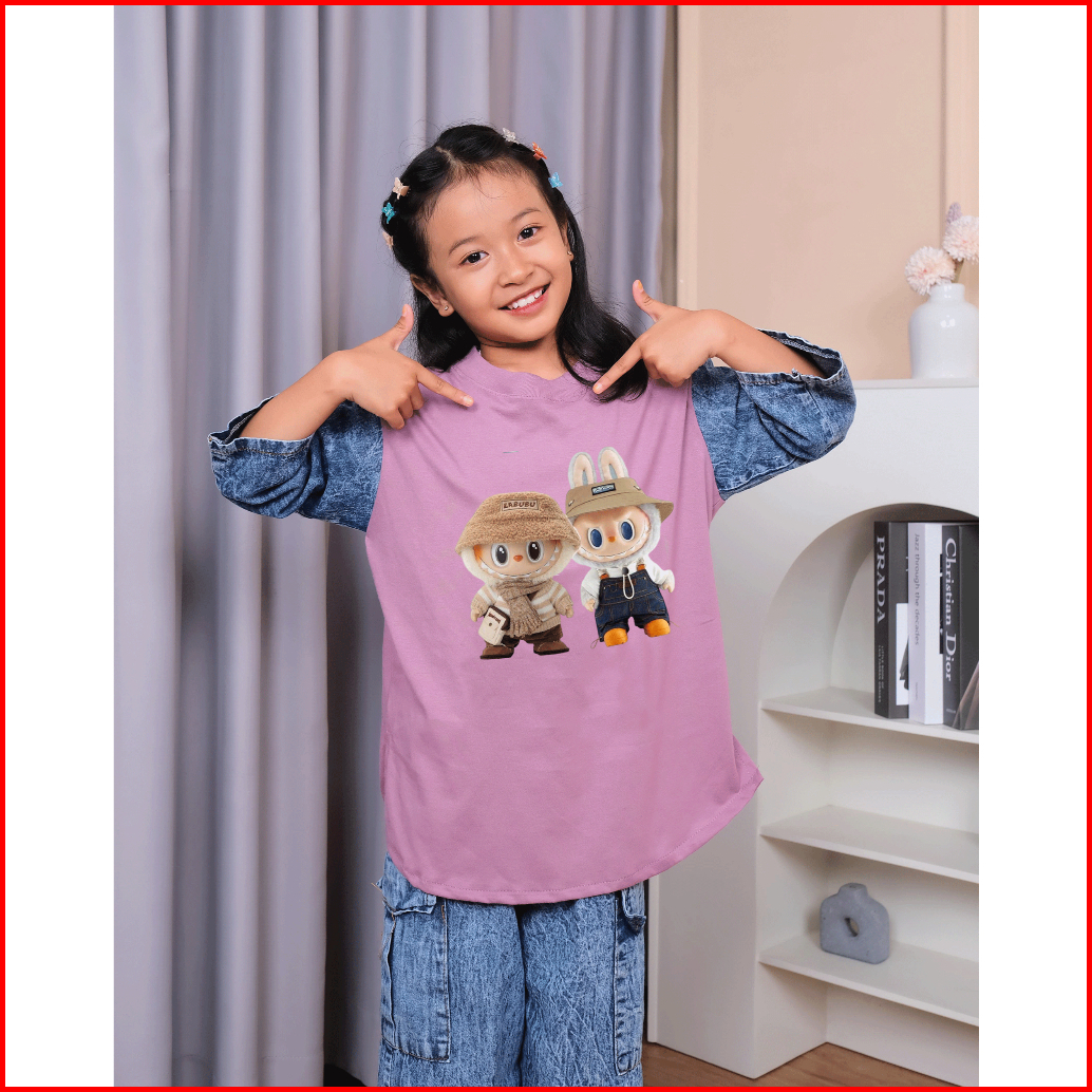 Setelan Labubu Anak Perempuan Baju Setelan Trendi Kekiniaan Karakter Viral
