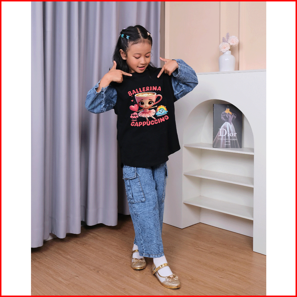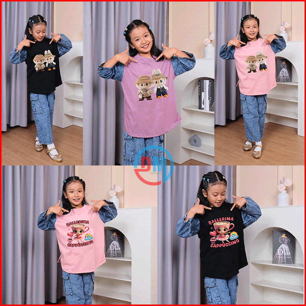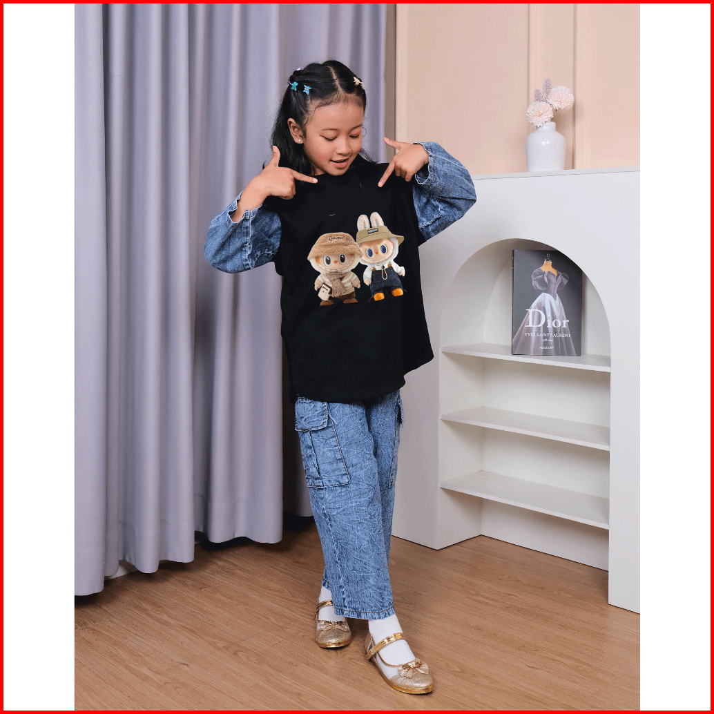 Setelan Labubu Anak Perempuan Baju Setelan Trendi Kekiniaan Karakter Viral
