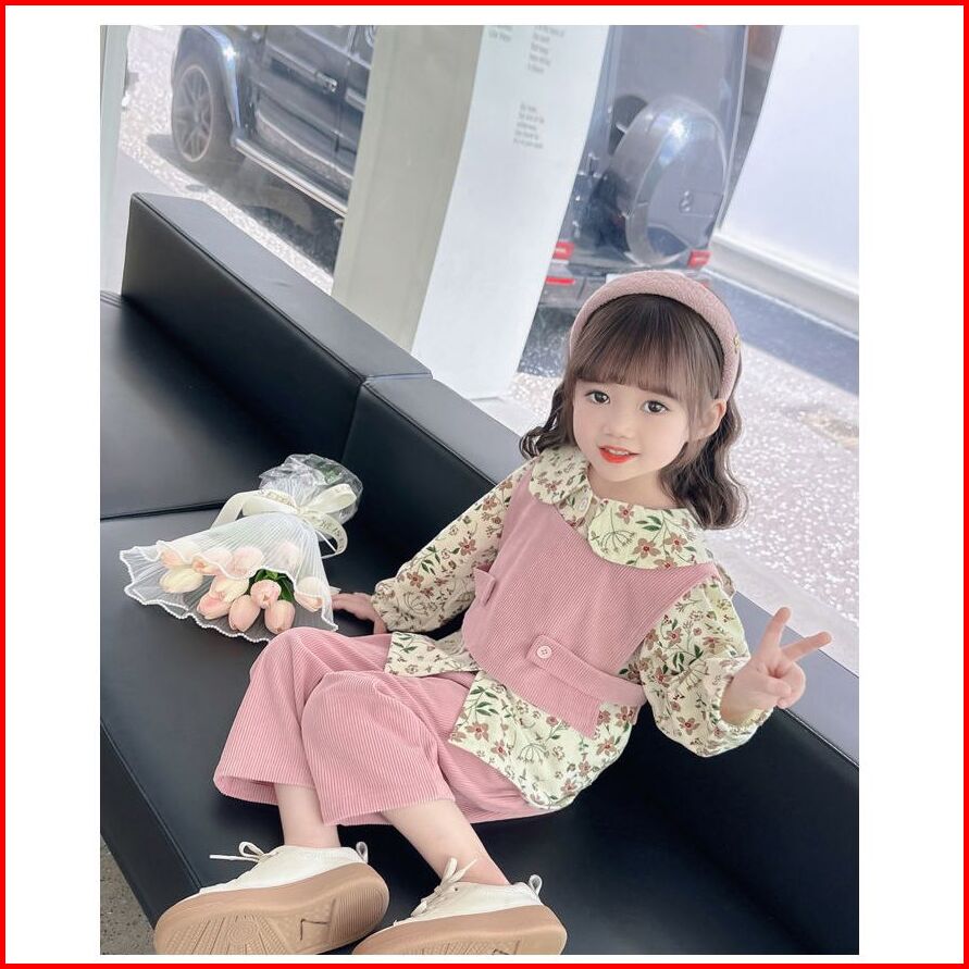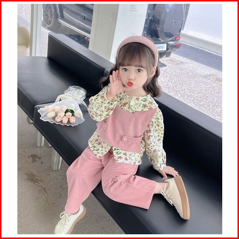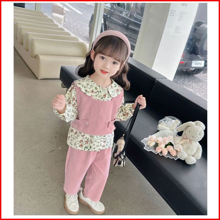 Kf Cat Setelan Baju Anak Perempuan Lengan Panjang Katun Motif Bunga Korean Style Usia 1-4 Tahun