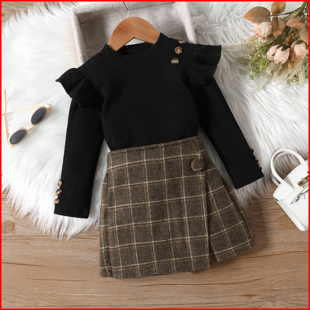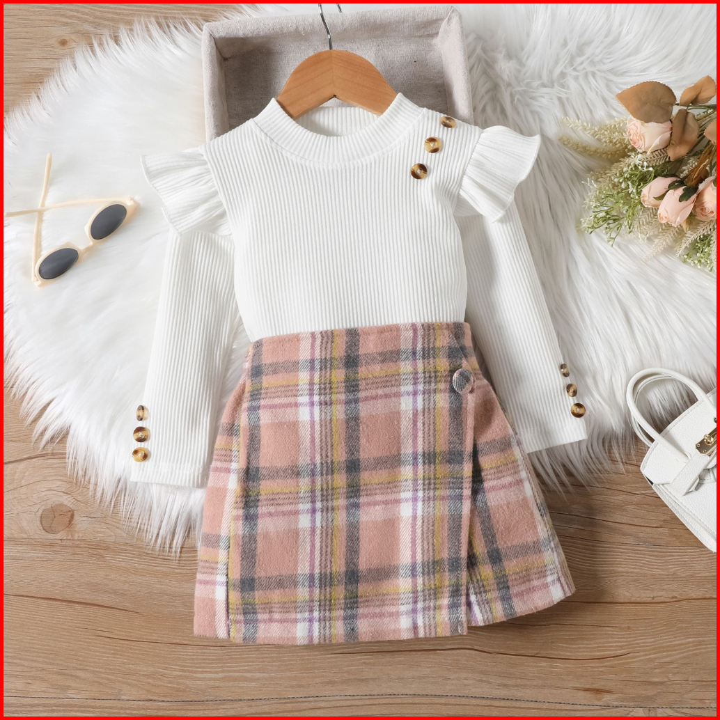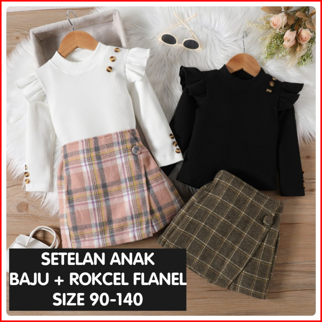 Loli-jkt Bs- 498 Setelan Anak Cewek Baju Rok Celana Flanel Ukuran 90-140