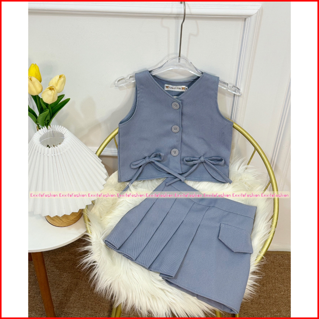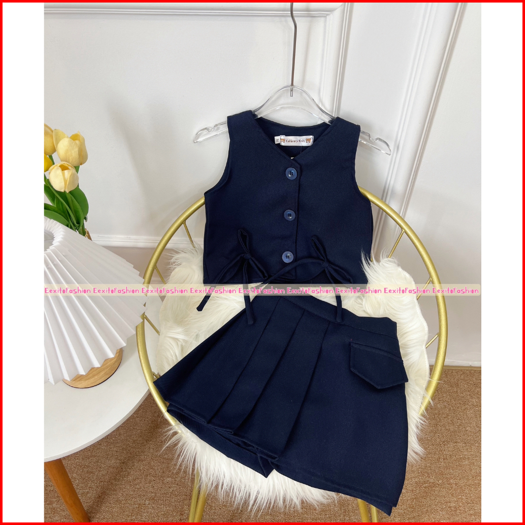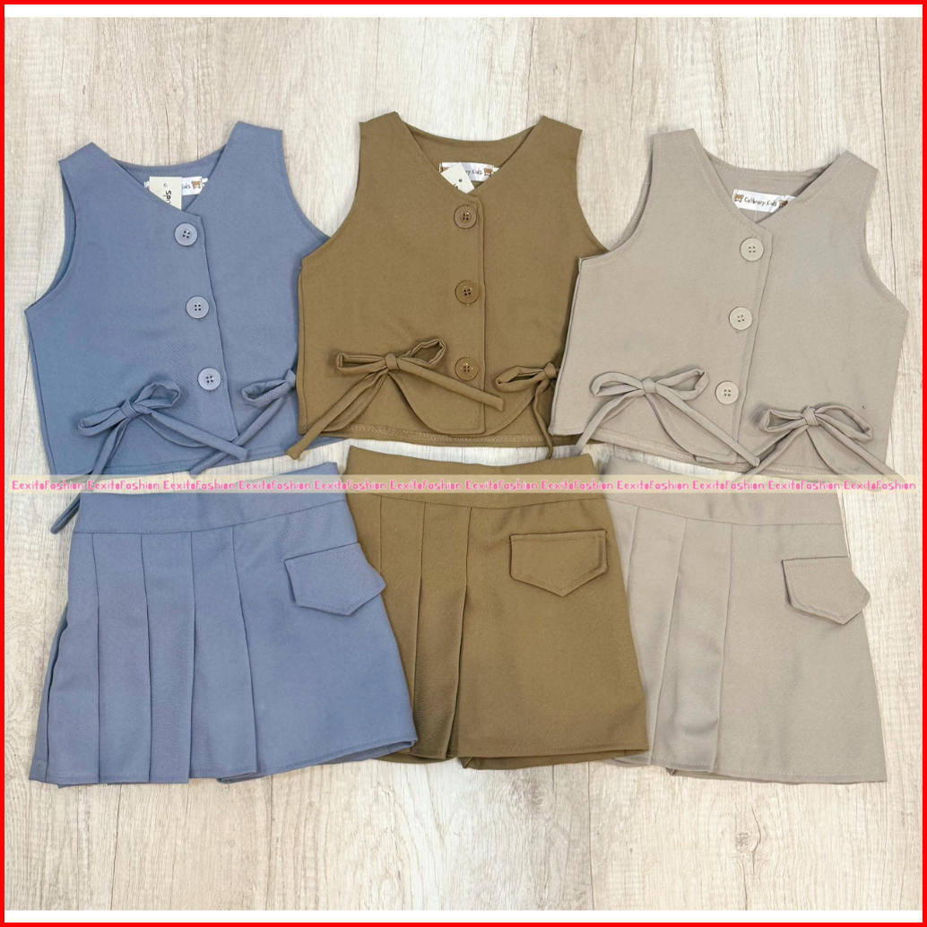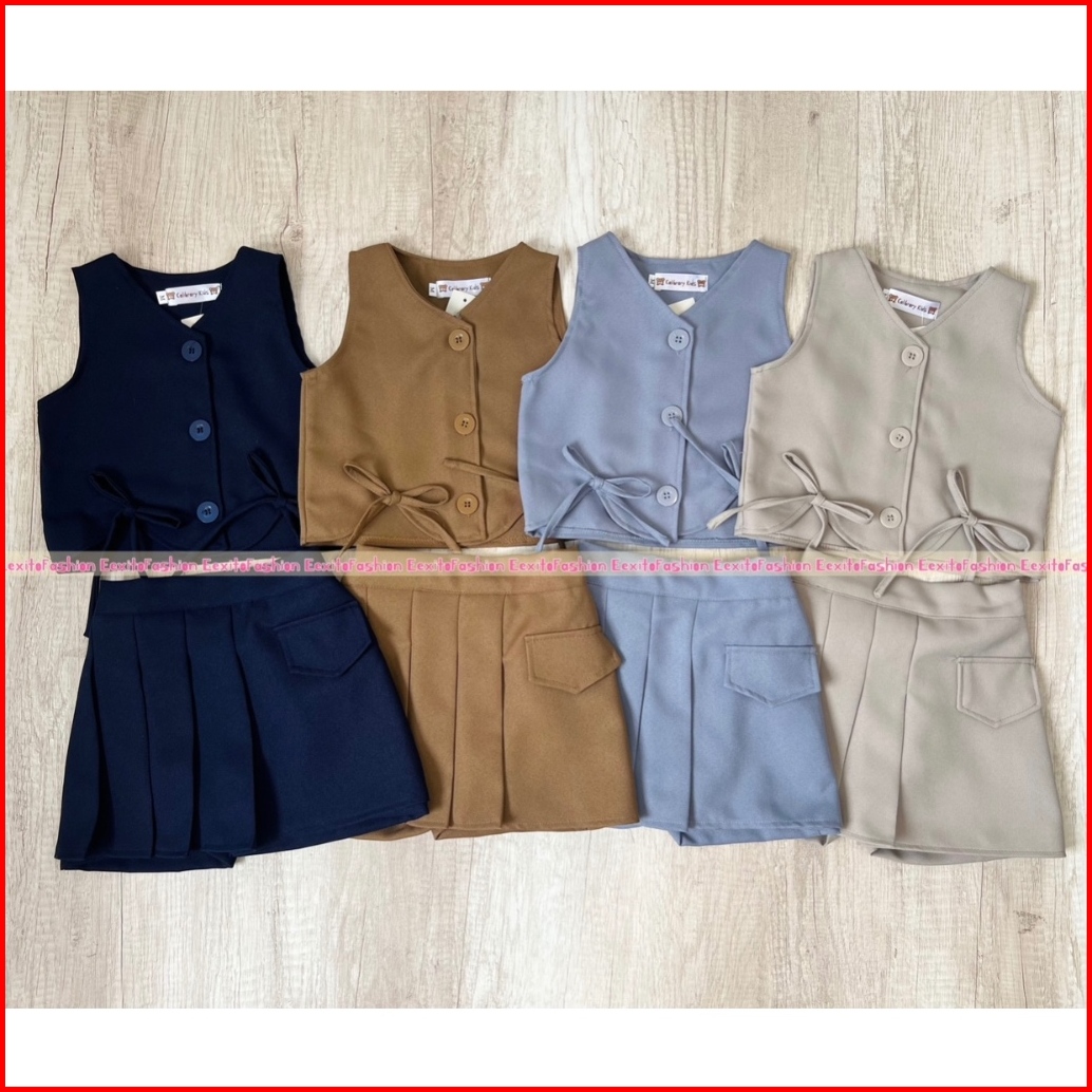 Eexitofashion Set Jisoo Vest Skort 1-4tahun Setelan Anak Perempuan Set Anak Cewek Fashion Anak Blazer Celana Rok Anak