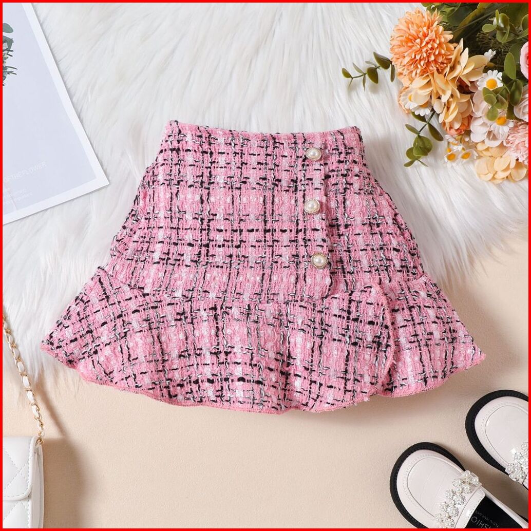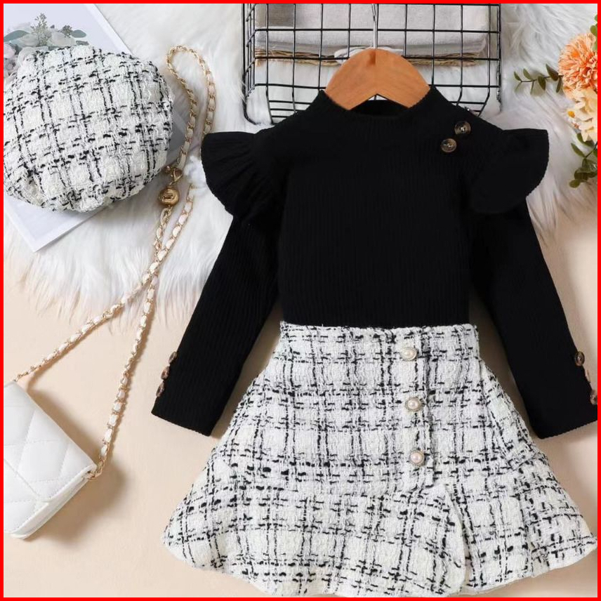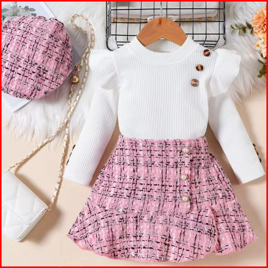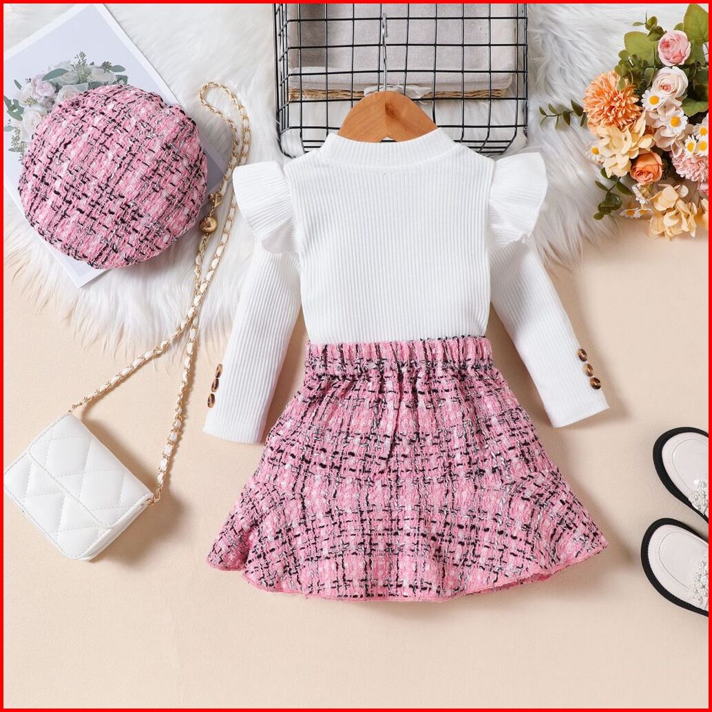 Loli-jkt Bs- 661 Setelan Anak Cewek Baju Knit Rok Twed Topi Gemas Size 90-140