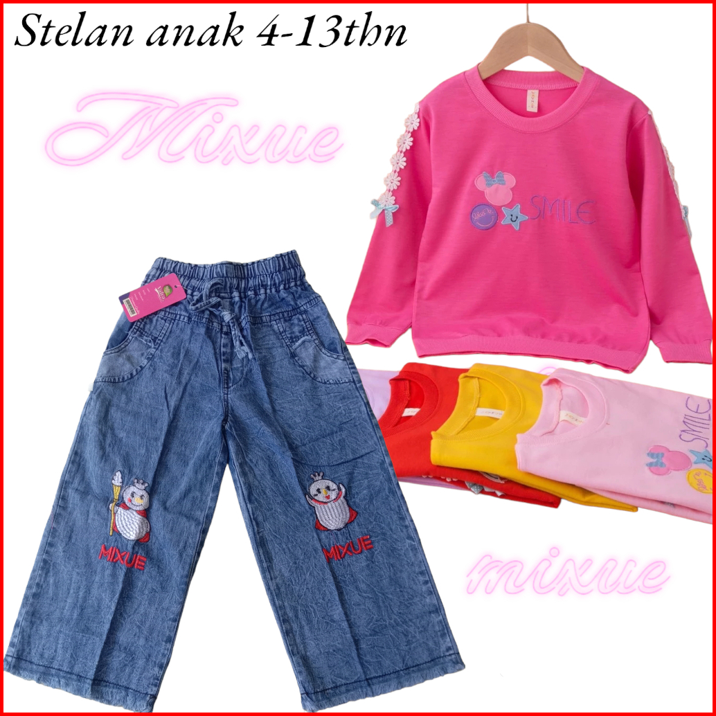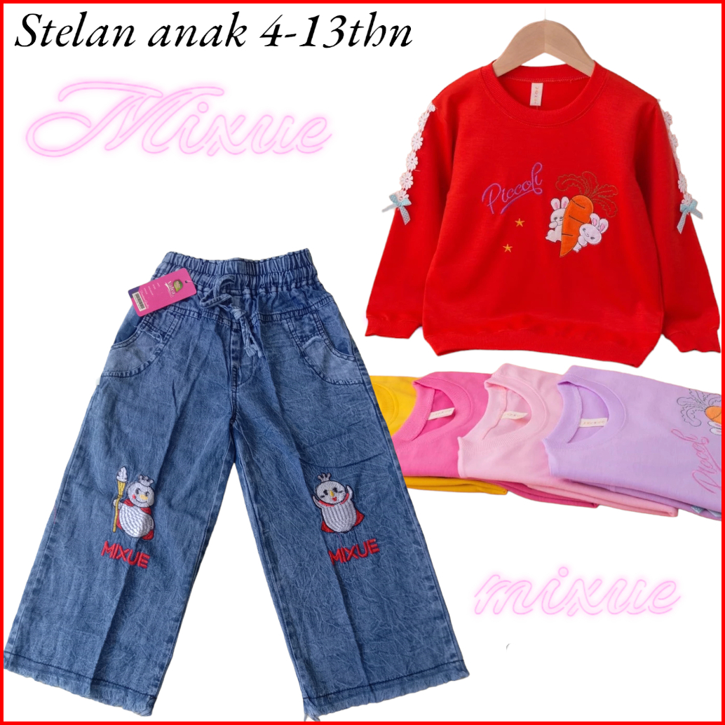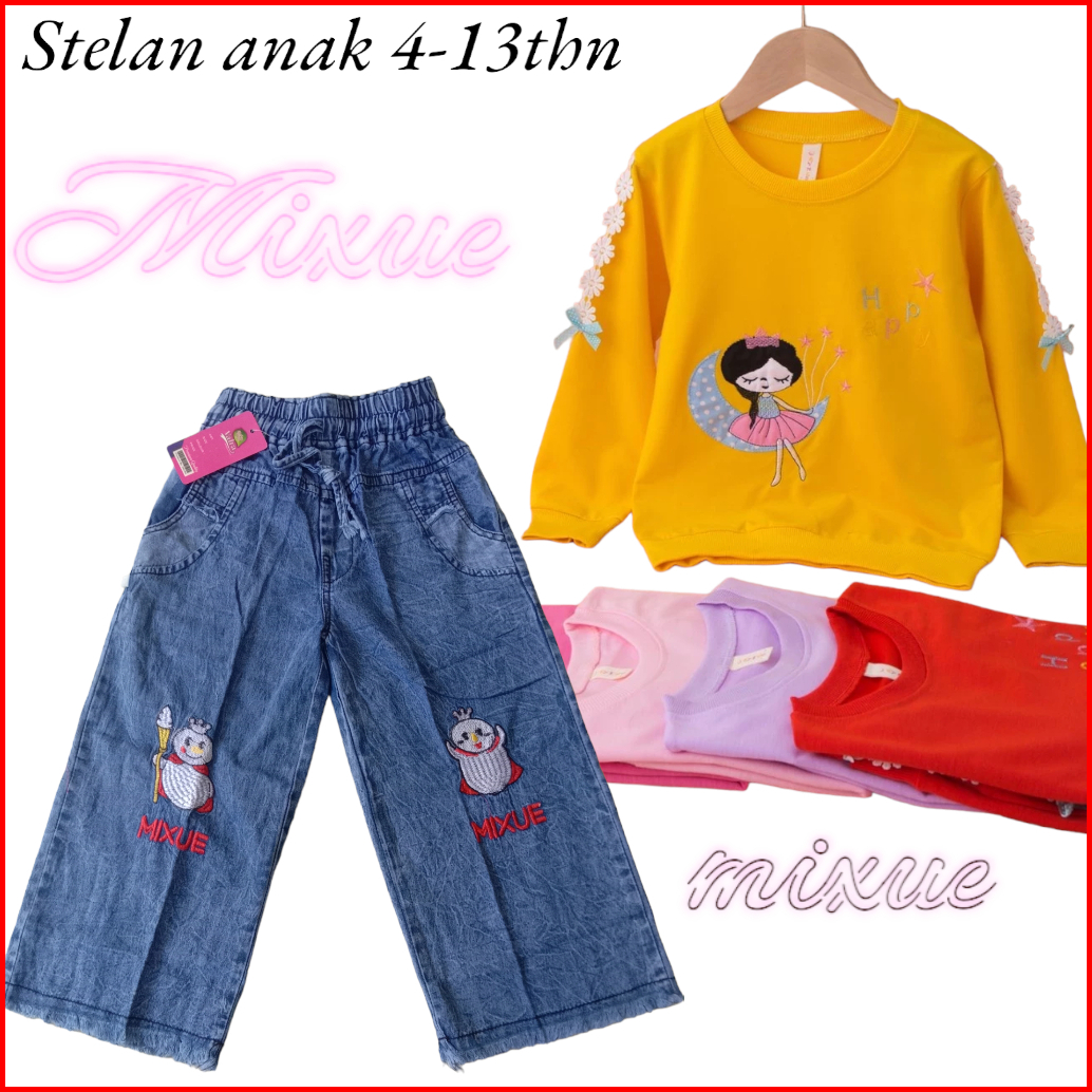 Setelan Anak Import Setelan Mixue Kulot Jeans Setelan Anak Perempuan Setelan Lengan Panjang