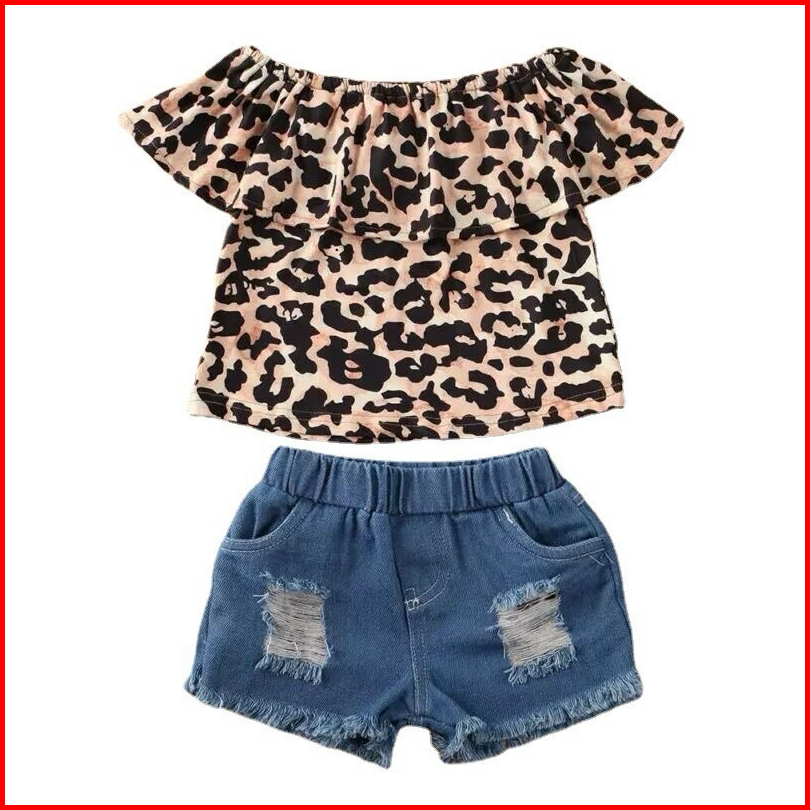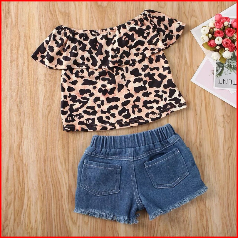 0-5th Setelan Anak Perempuan Motif Leopard Denim Macan