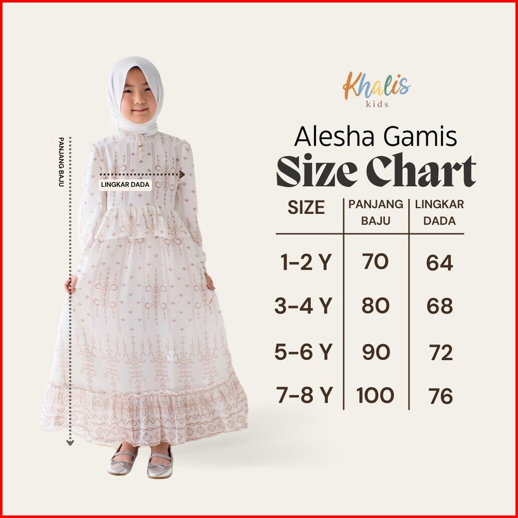 Khalis Kids Alesha Dress Gamis Baju Dress Gamis Anak Perempuan 1-8 Tahun
