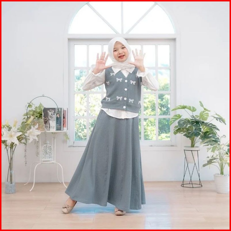 Terbaru Akhira Set Kids 3in1 Setelan Rok Anak Perempuan Usia 8 9 10 11 12 Tahun One Set Anak Tanggung Bahan Knit Florenc