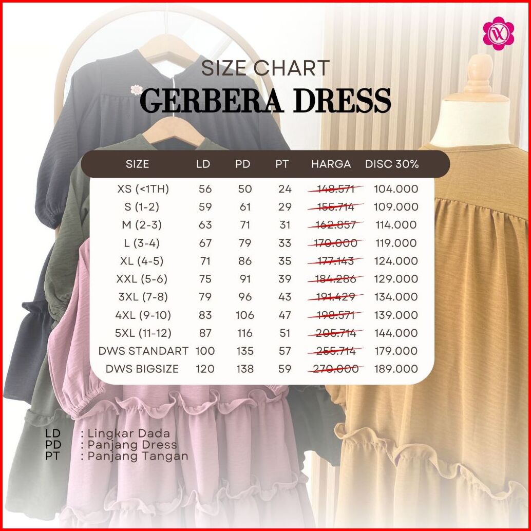 Ivaniar Gerbera Dress Dress Gamis Couple Ibu Dan Anak Perempuan 1-12 Tahun