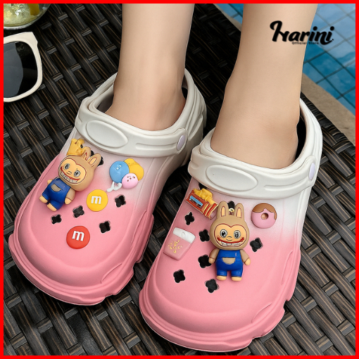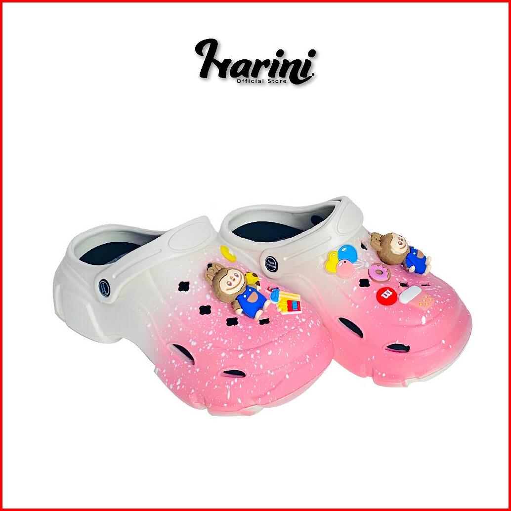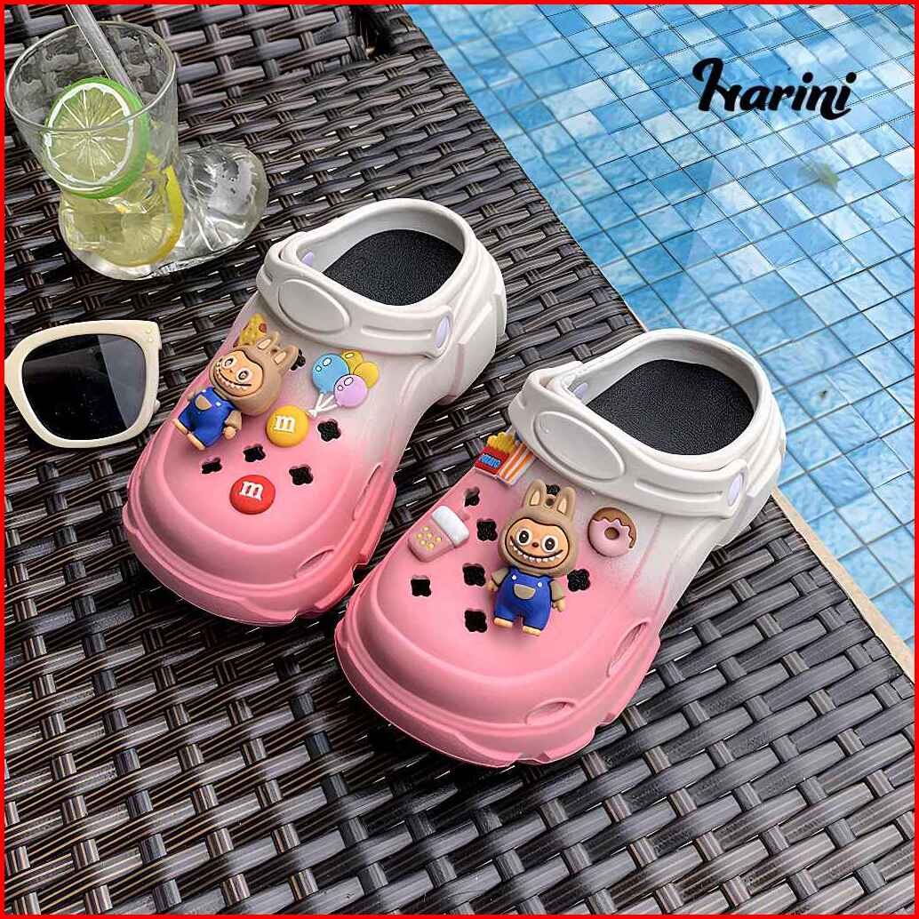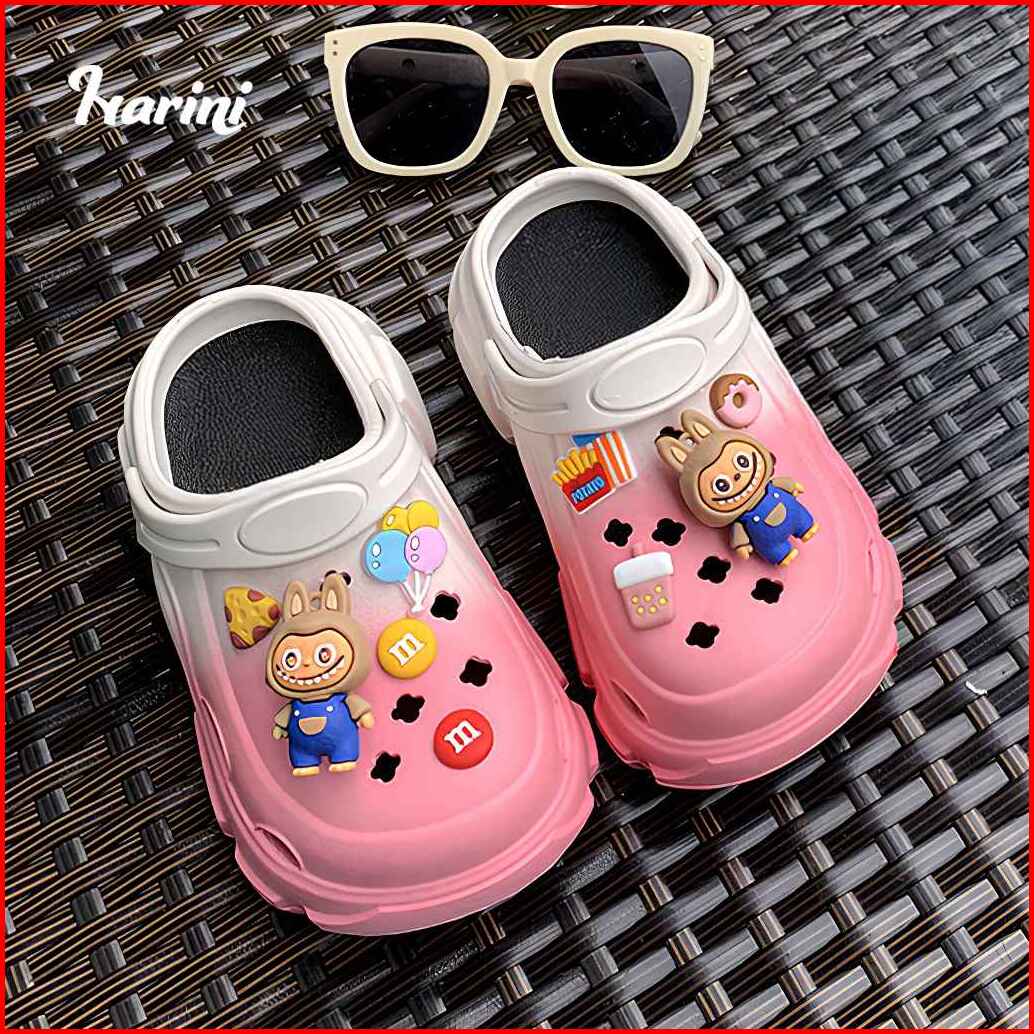 Sandal Anak Kodok Free Acc Labubu Jibbitz Slop Kodok Dejavu Sendal Korean Style Black Pink X606-13