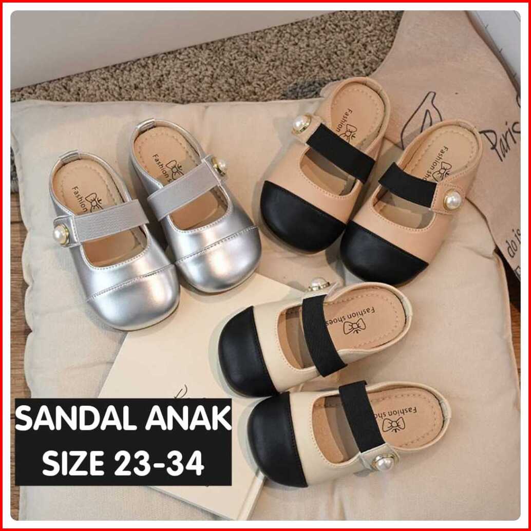 Loli-jkt Sd- Ksc Sandal Slop Flat Anak Perekat Karet Mutiara Size 23-34