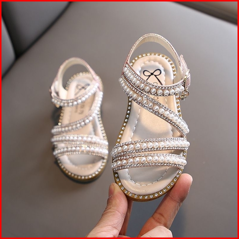 Sepatu Sendal Sandal Flat Pesta Mutiara Blink Anak Perempuan Import