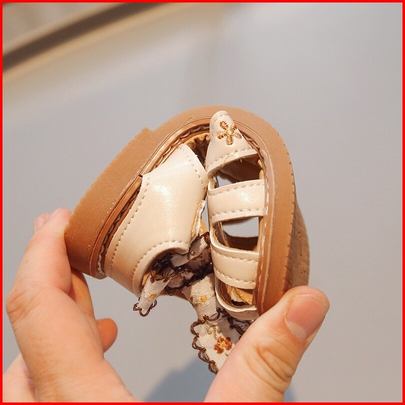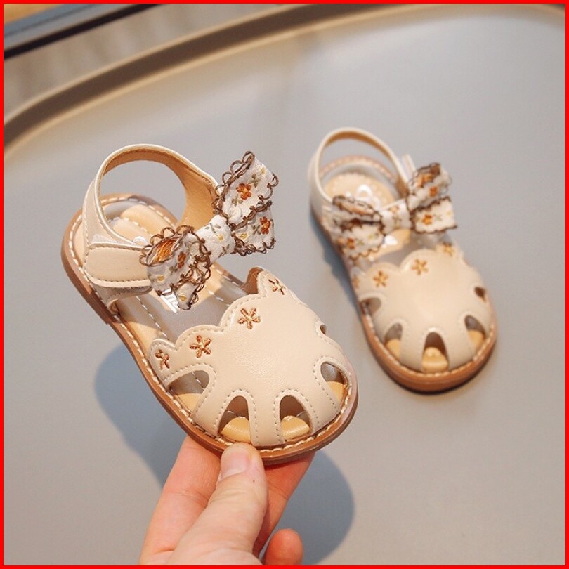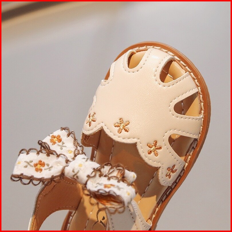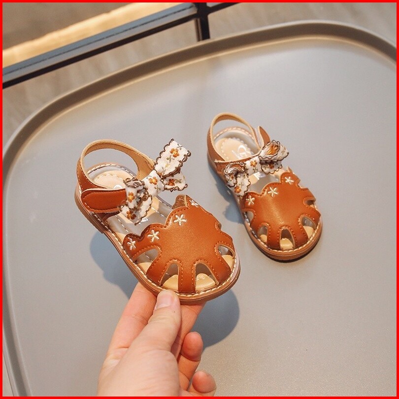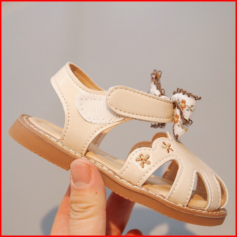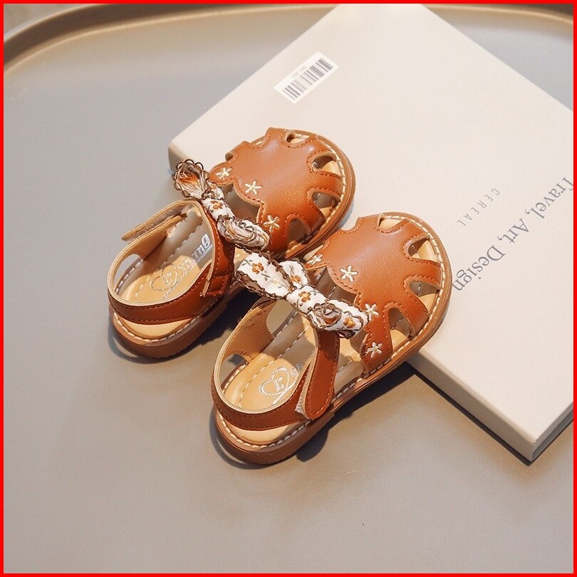 Cuci Gudang Sandal Kulit Bayi Perempuan Ikatan Simpul Sepatu Anak Bordir Bunga Warna Solid Kulit Lembut Ukuran 21-30