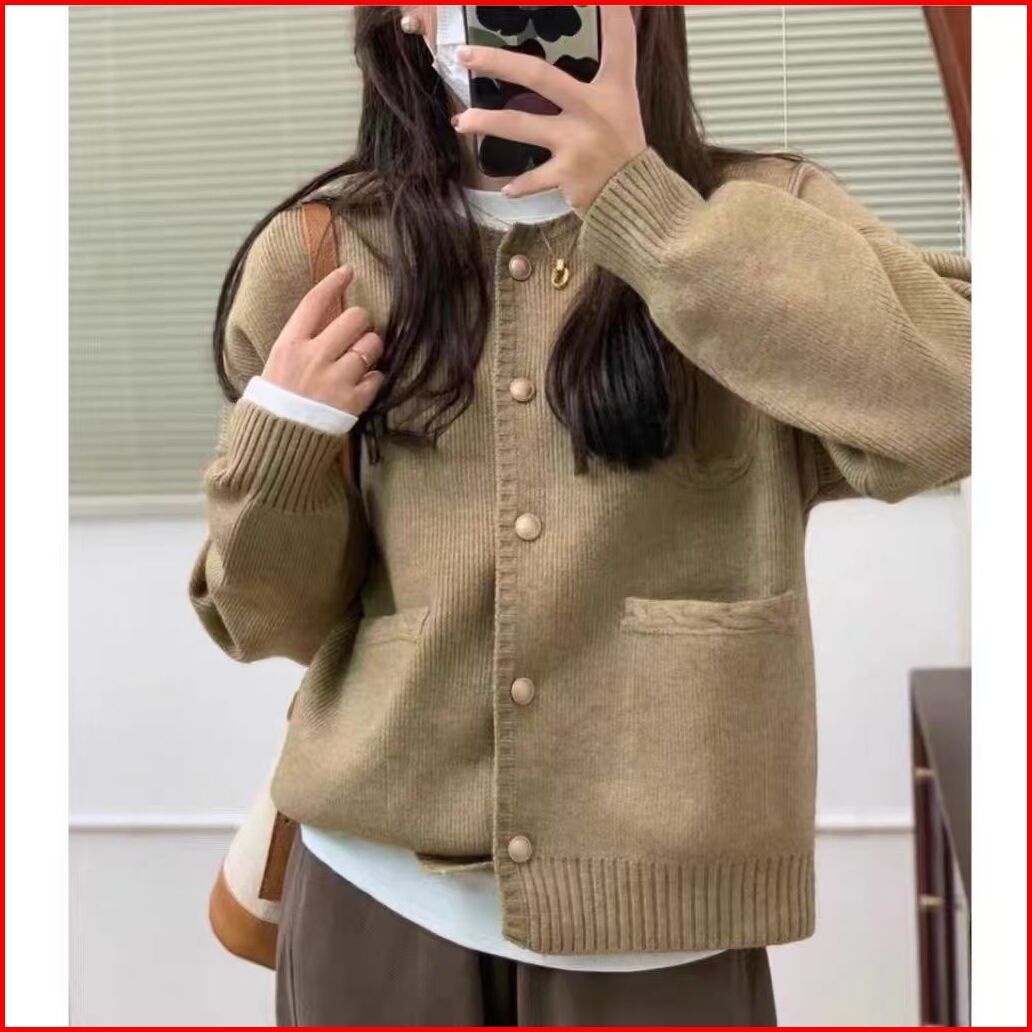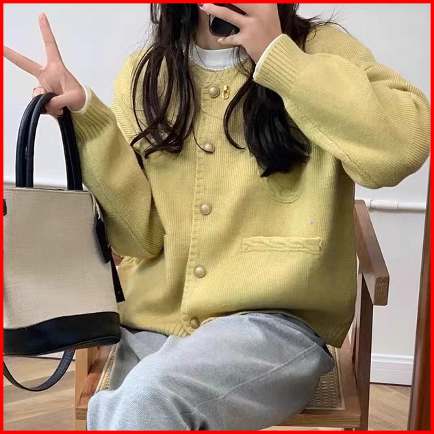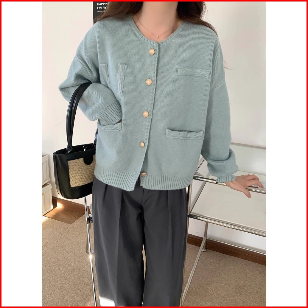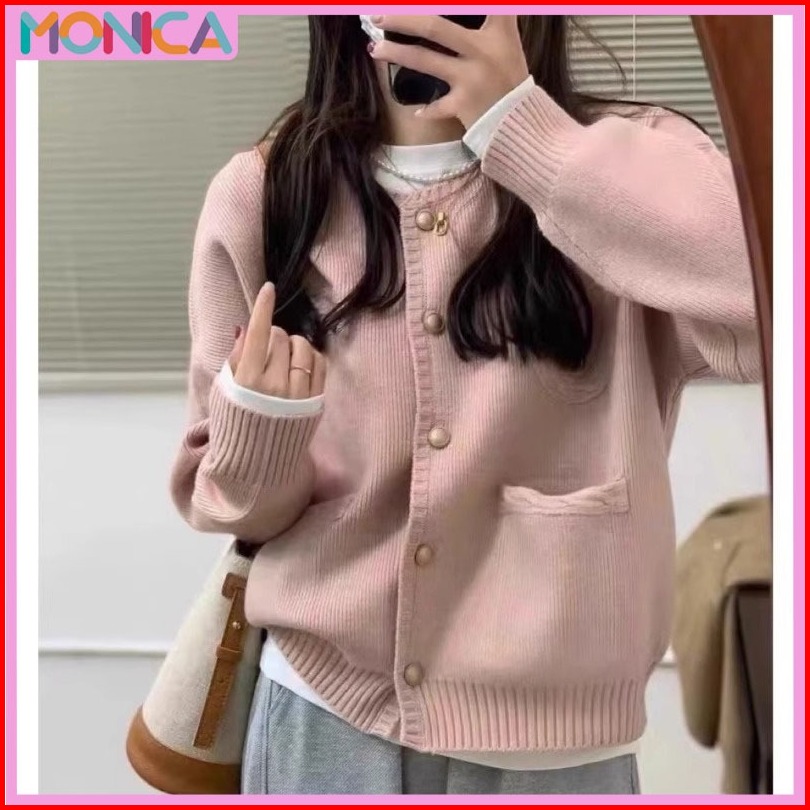 Monica Sweater Rajut Wanita Ala Korea Kardigan Rajutan Lembut Warna Solid Yang Modis Sweater Rajutan Longgar Kerah Awak
