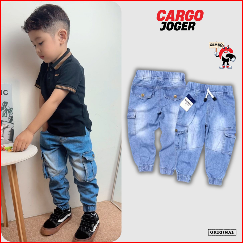 Jogger Cargo Jeans Anak 2-10 Tahun - Celana Anak Panjang Denim Wisker Blitz - Jogger Anak - Gembo Kids