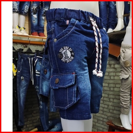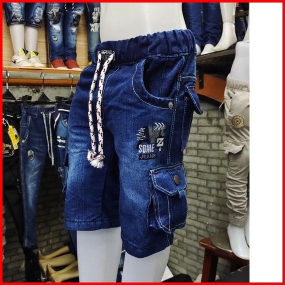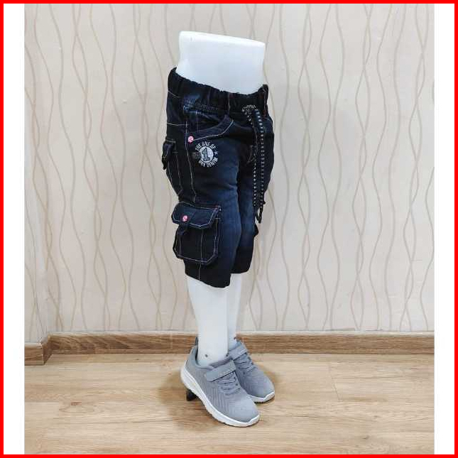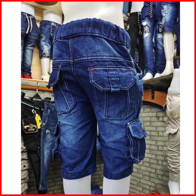 Celana Pendek Jeans Non Stretch Anak Laki-laki Usia 3 - 12 Tahun Bahan Jeans Jins Lepis Model Cargo Kargo Kantong Gamblo