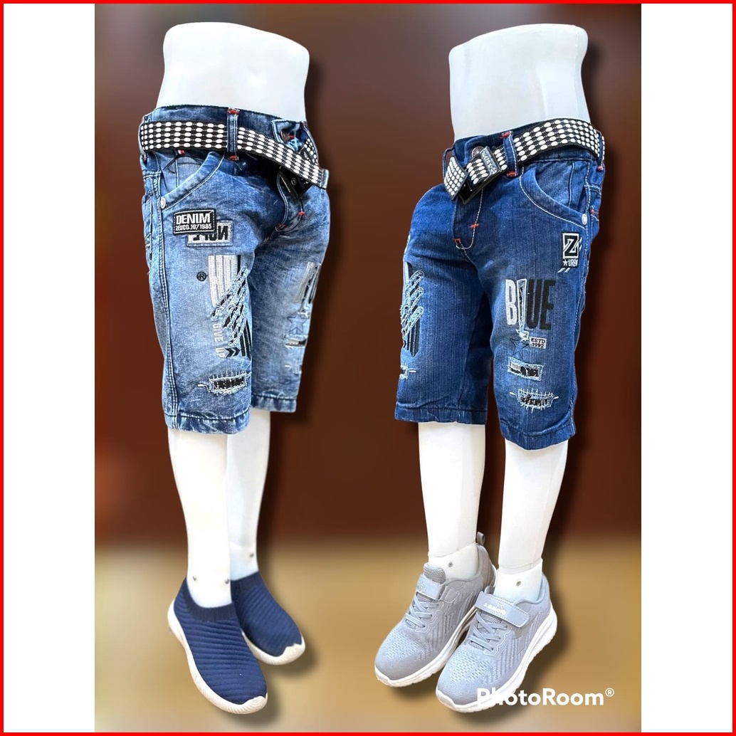 Celana Pendek Anak Laki Usia 3 - 12 Tahun Bahan Jeans Jins Lepis Model Resleting Kancing Motif Bordir Sobek Robek Kekini