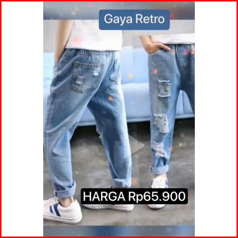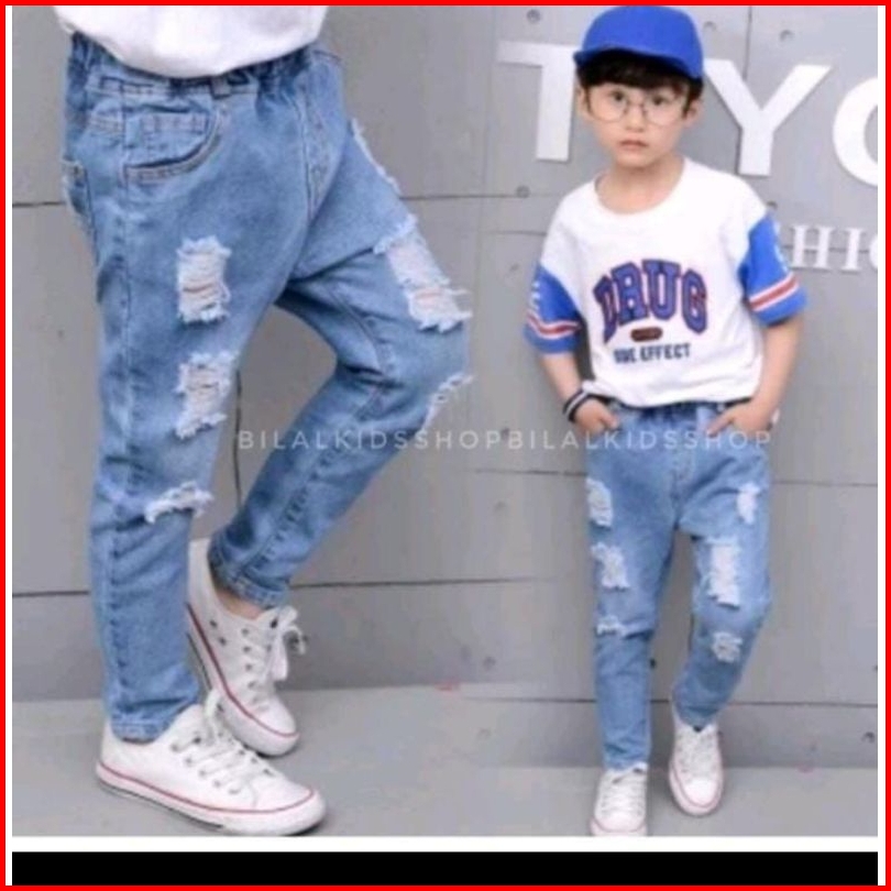 New Arival Celana Jeans Panjang Ripped Motif Sobek Tembus Anak Laki-laki Terbaru 2025 Usia 1-13thn