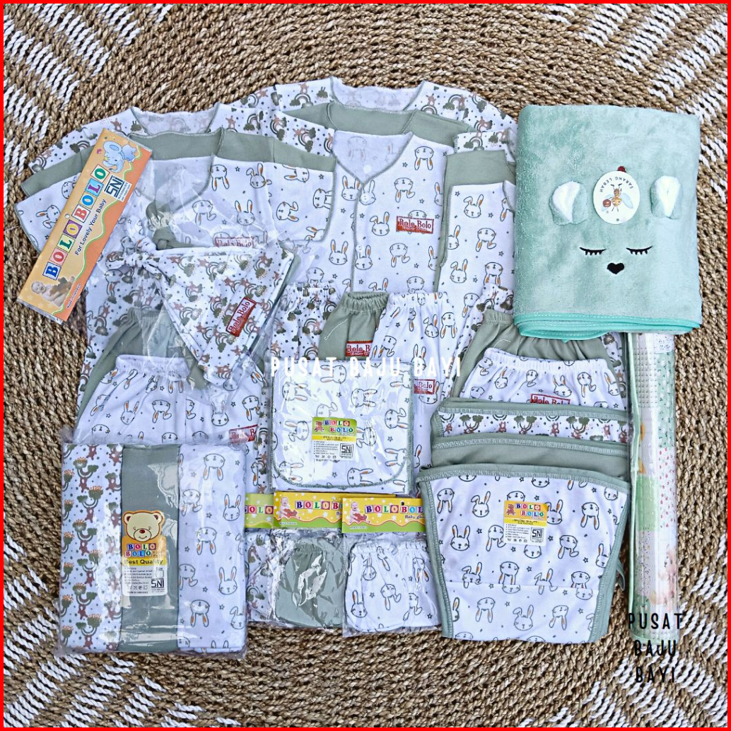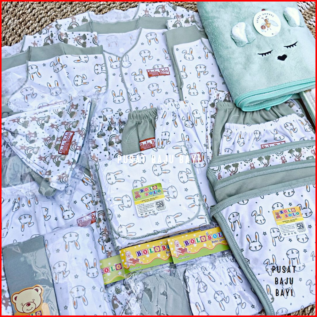 50 Pcs Paket Lahiran Super Hemat Komplit Baju Bayi Baru Lahir Paket Hemat Bayi Baru Lahir Serian Hijau