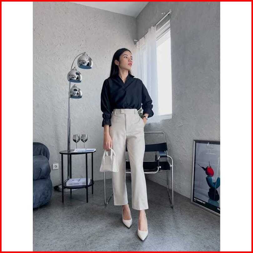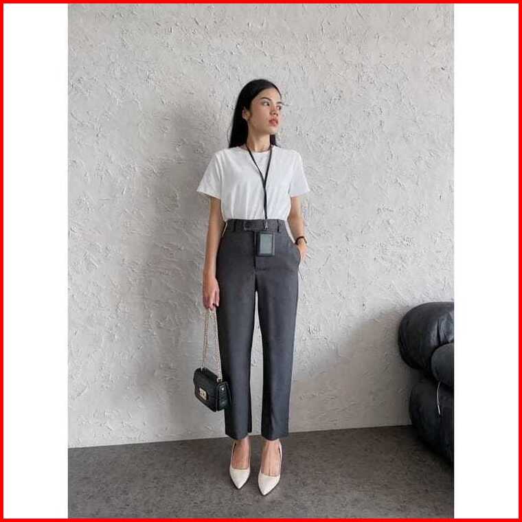 Alexa Pants - Celana Kerja Wanita Kantor Highwaist Daily Simple Pinggang Karet Belakang