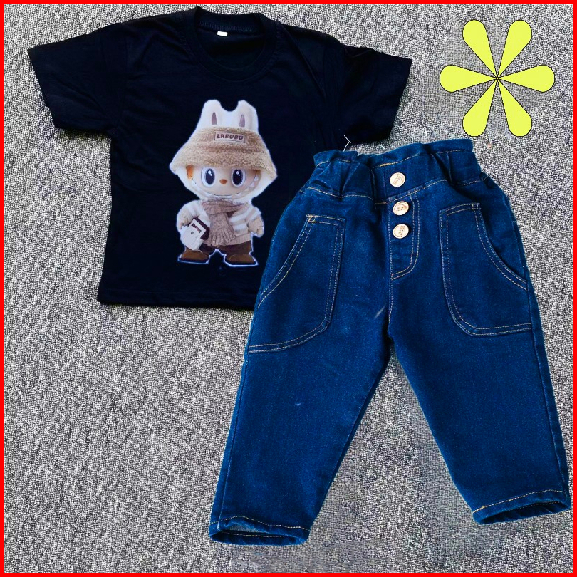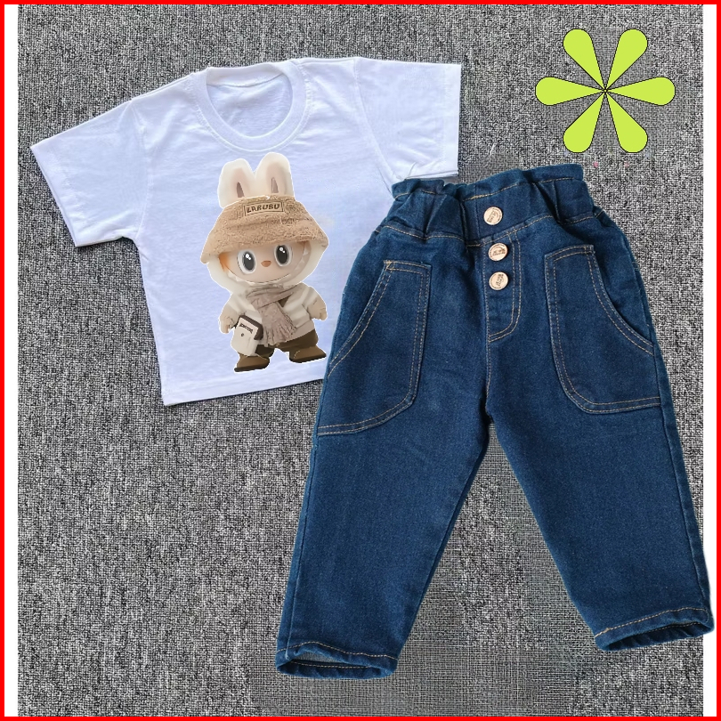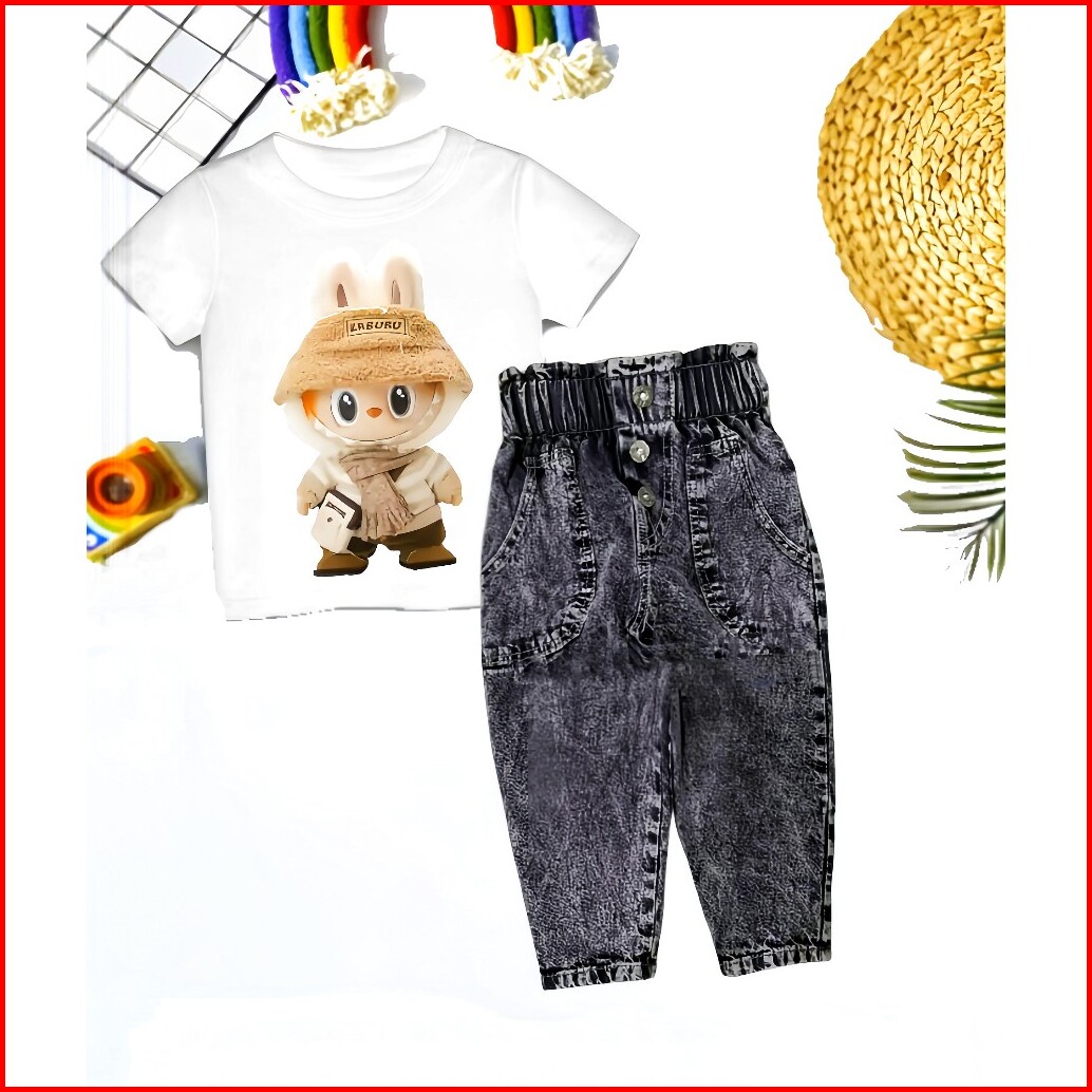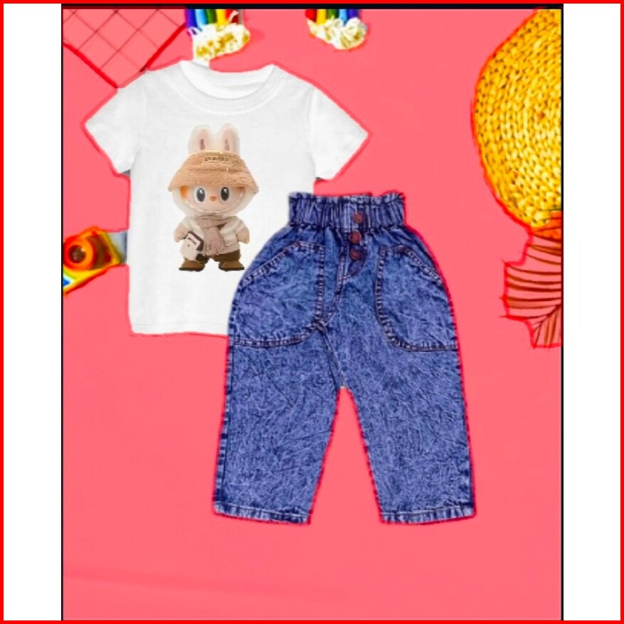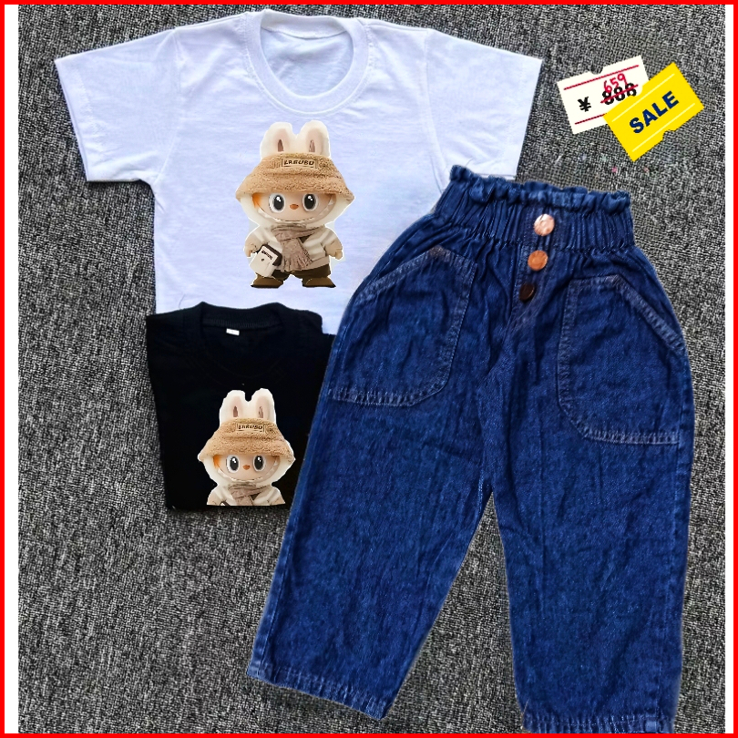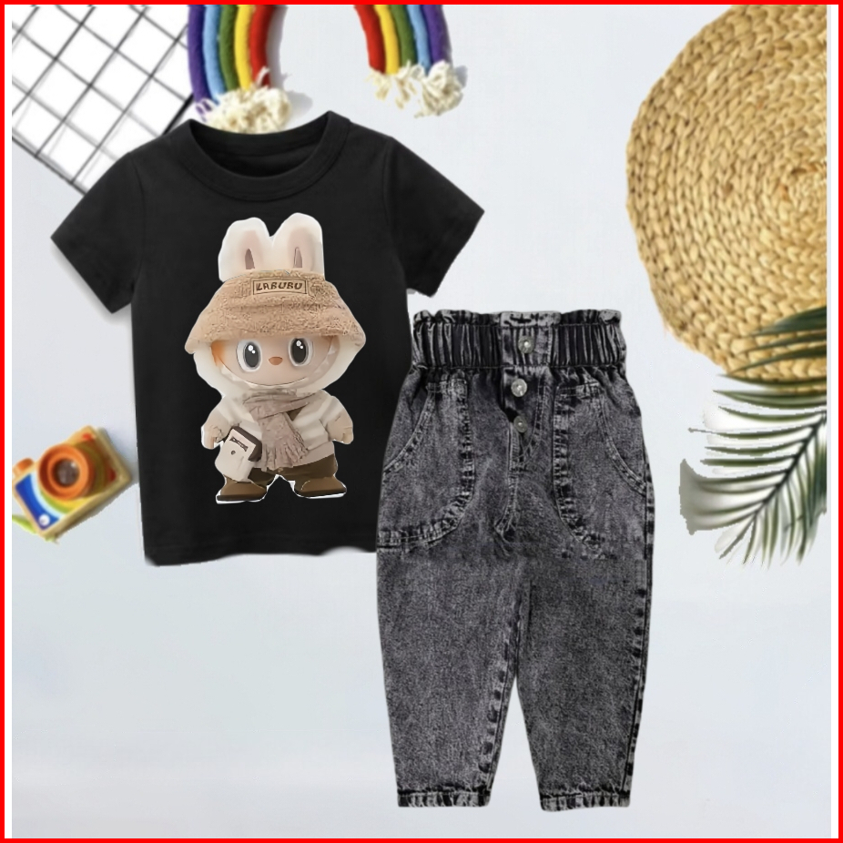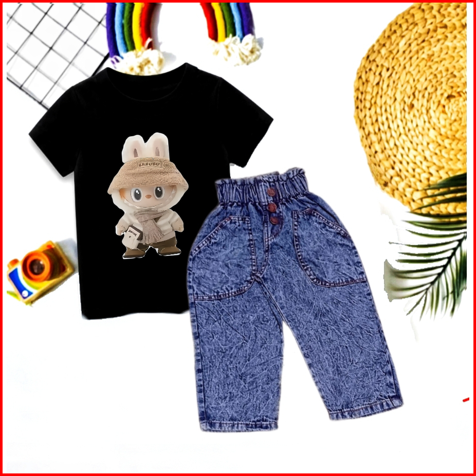 Setelan Celana Kaos Anak Motif Labubu Cotton Combed 30s Usia 1 Sampai 6 Tahun