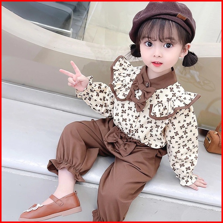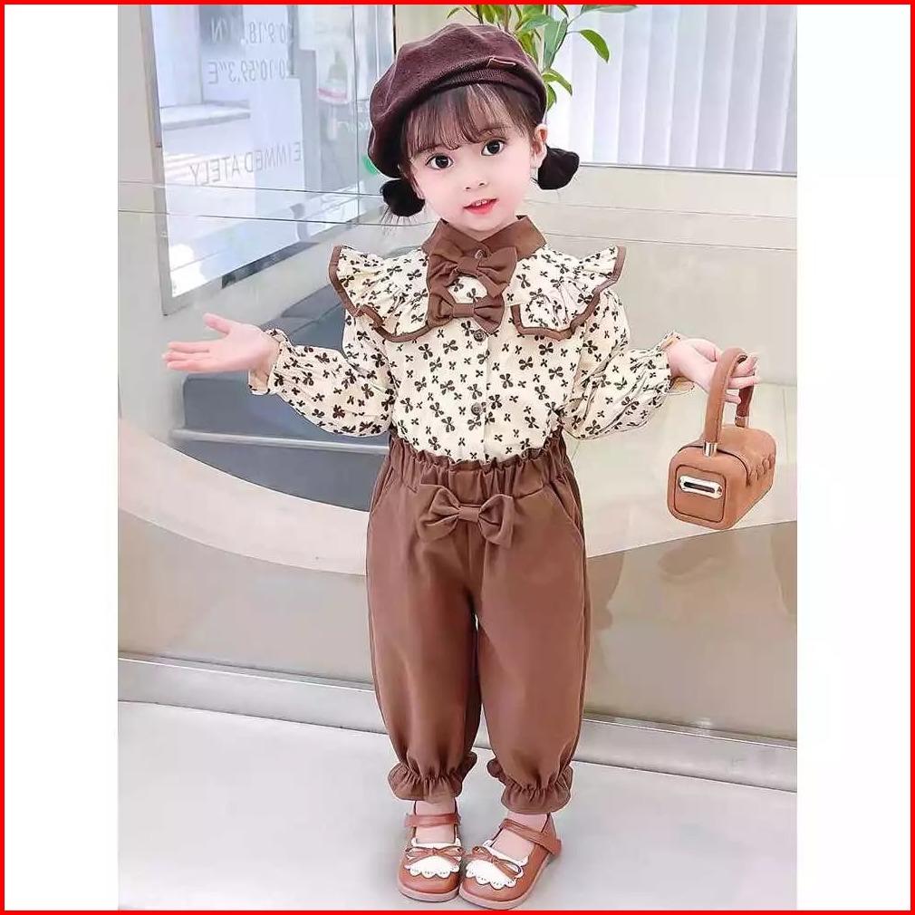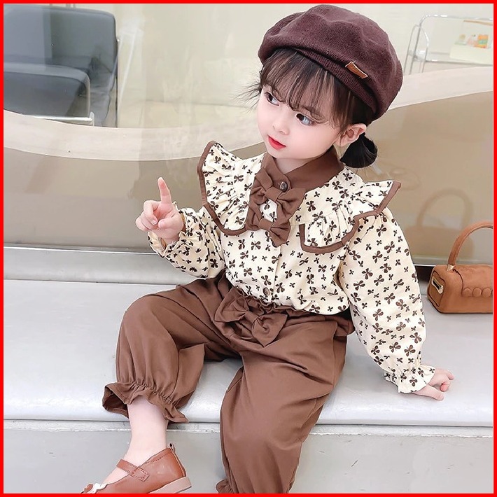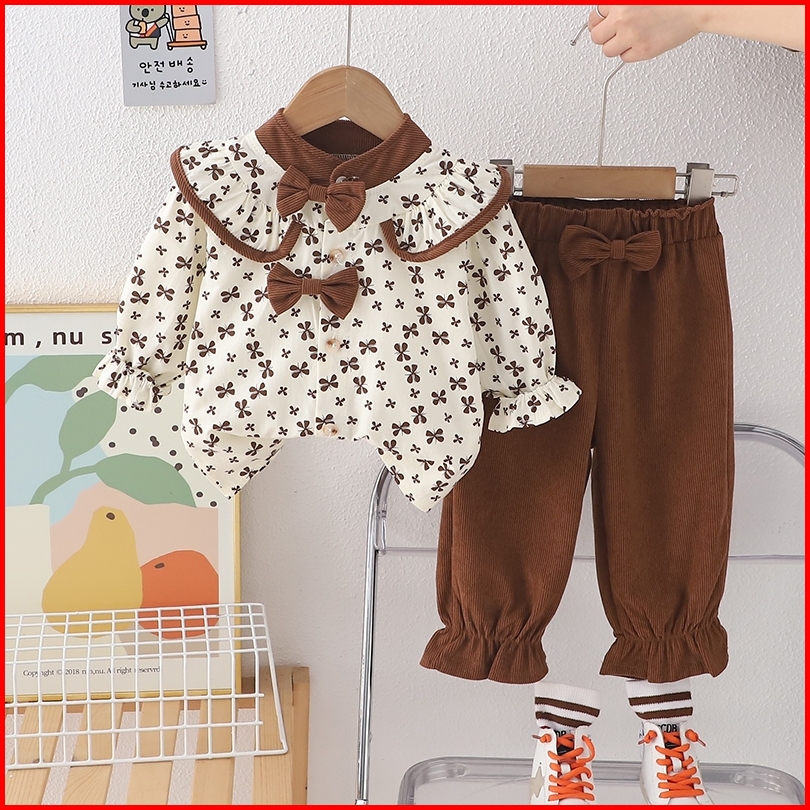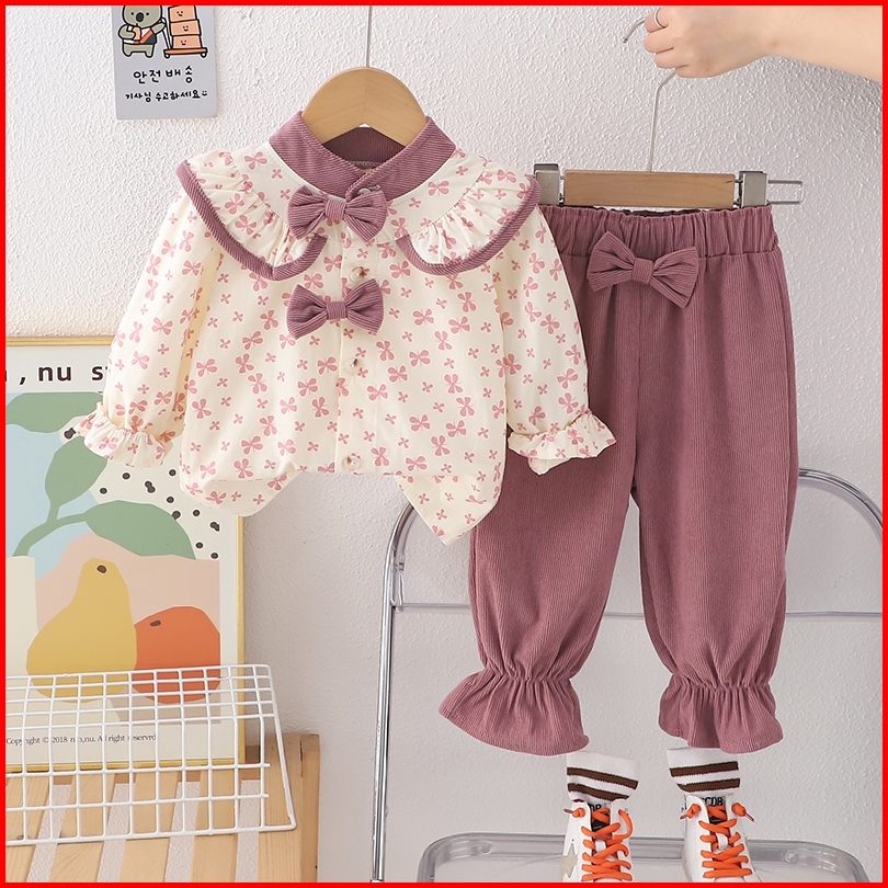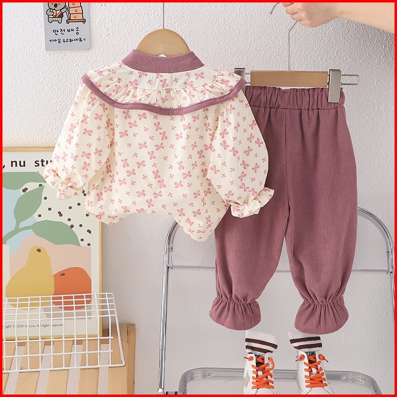 Twinkle Setelan Baju Anak Perempuan Bahan Corduroy Motif Bunga Casual Style Usia 1-4 Tahun