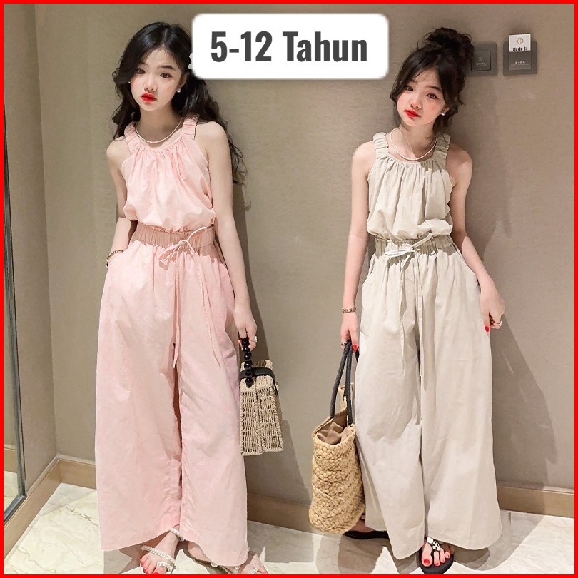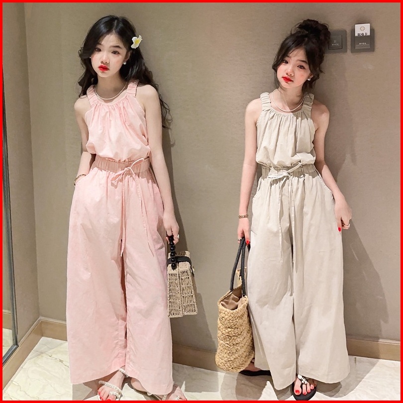 Chubbi 92 New Summer Setelan Set Anak Tanggung Perempuan Sleeveless Top Pant Wide Leg