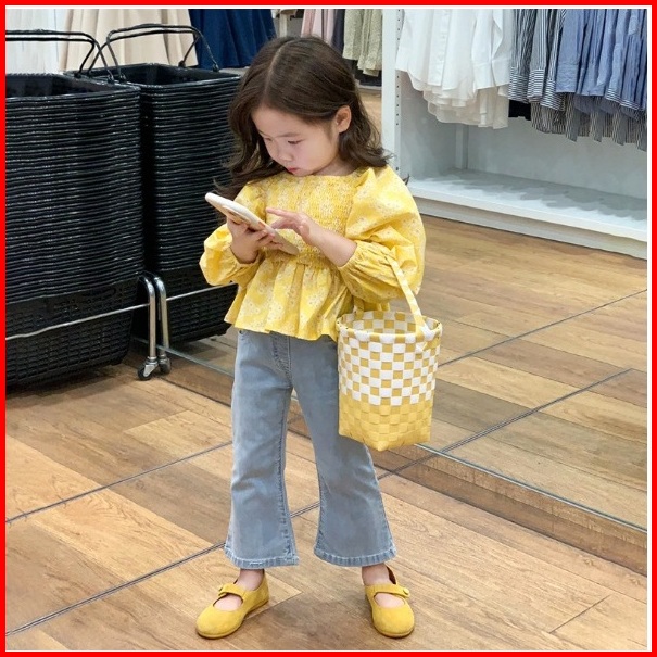 Setelan Anak Model Sabrina Pink Kuning Bunga Jeans For Kids Cotton 100-140