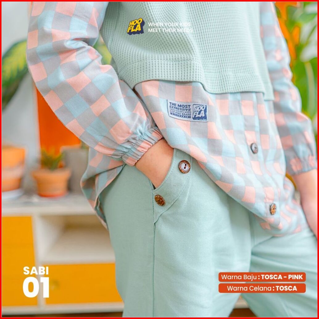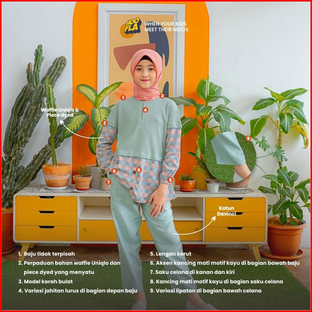 Hoofla Sabina Baju Celana Anak Perempuan 5-12 Tahun Muslimah Setelan Casual Pink Tosca