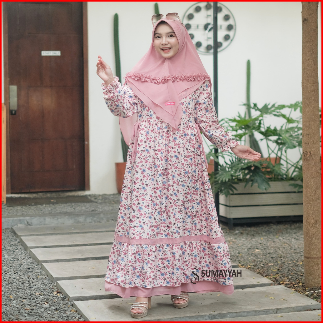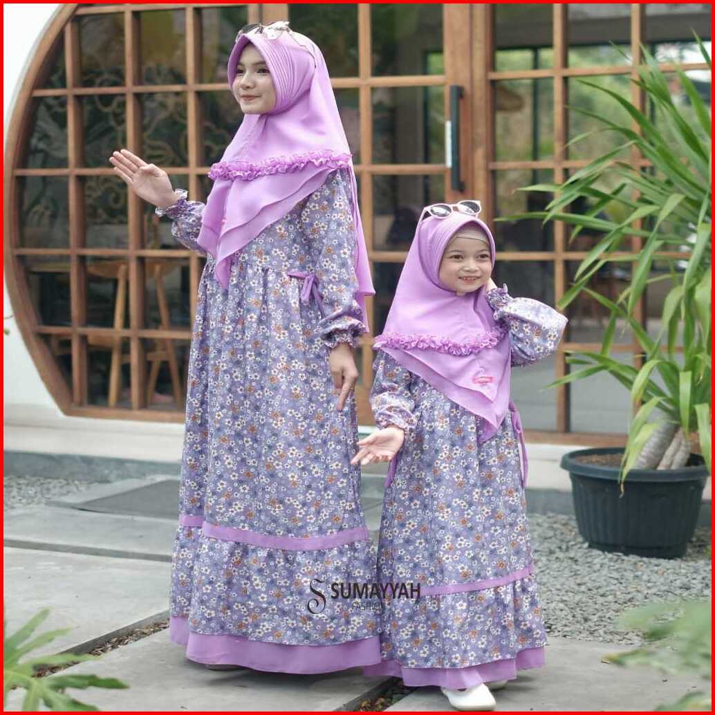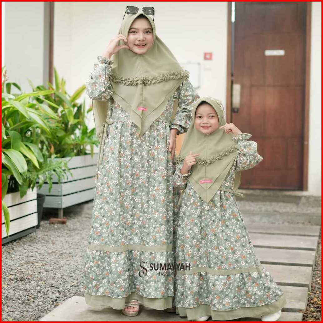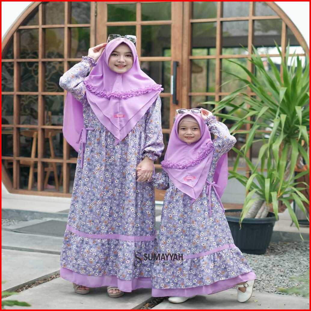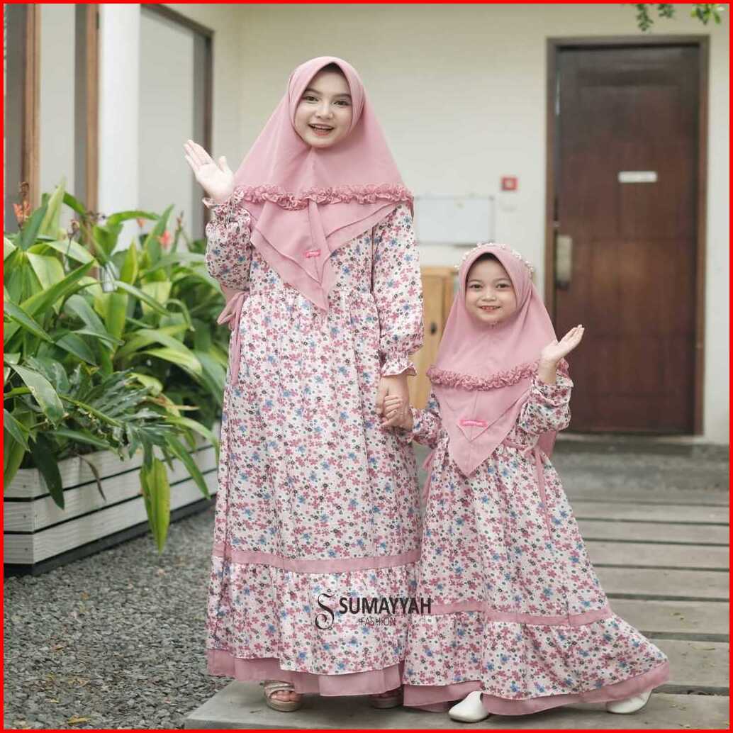 Harga Satuan Gamis Couple Ibu Dan Anak Perempuan Set Hijab Syar I Bahan Shakila Mix Ceruty Babydoll