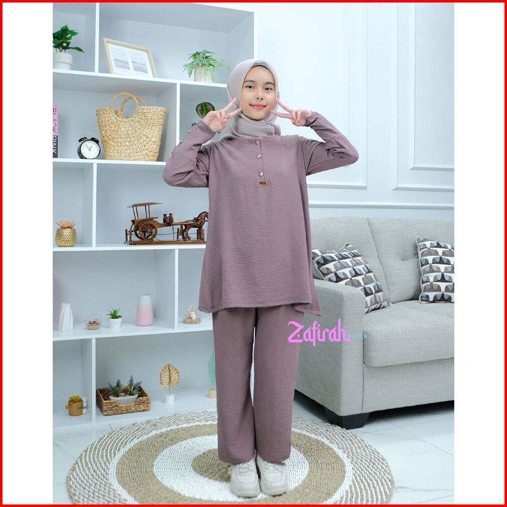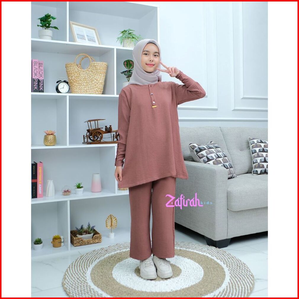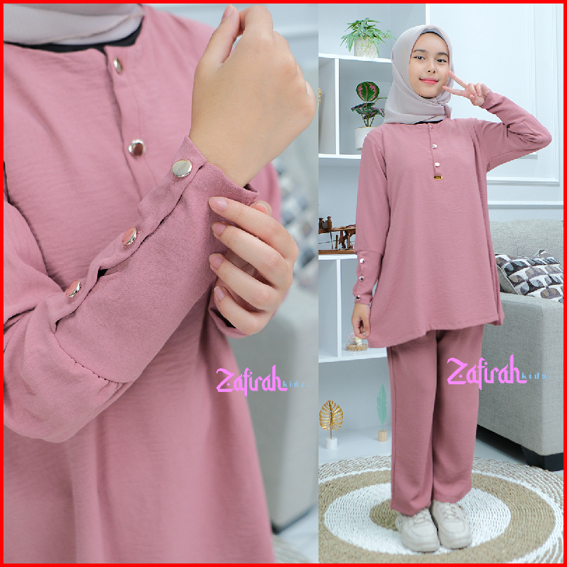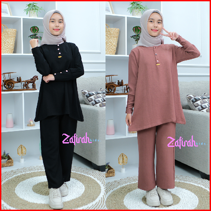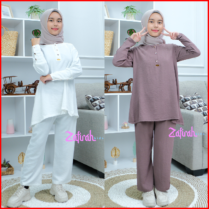 Baju Setelan Khansa Anak Perempuan Muslimah Terbaru One Set Tunik Crinkle Airflow By Zafirah Kids
