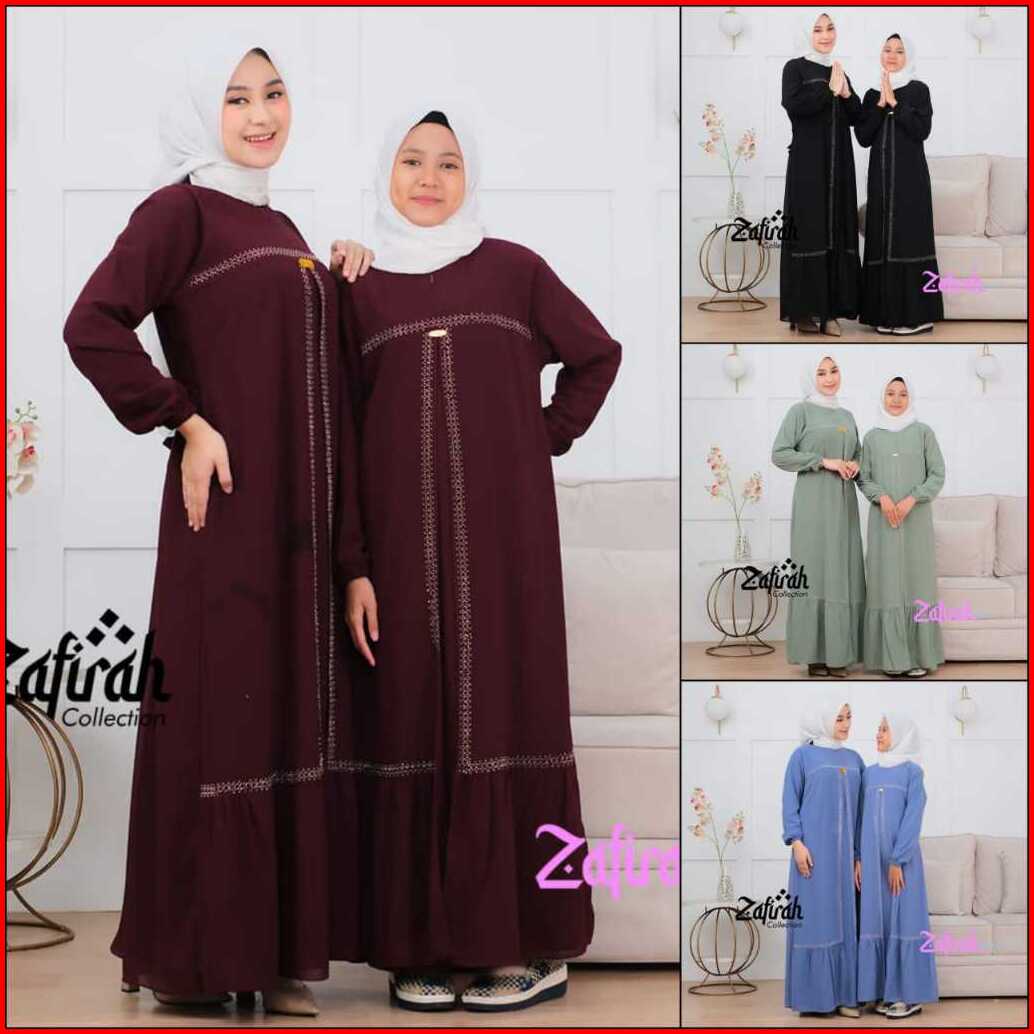 Gamis Couple Ibu Anak Perempuan Fateena Dress Ceruty Swarovsky Pakaian Wanita Muslim Mewah Elegan