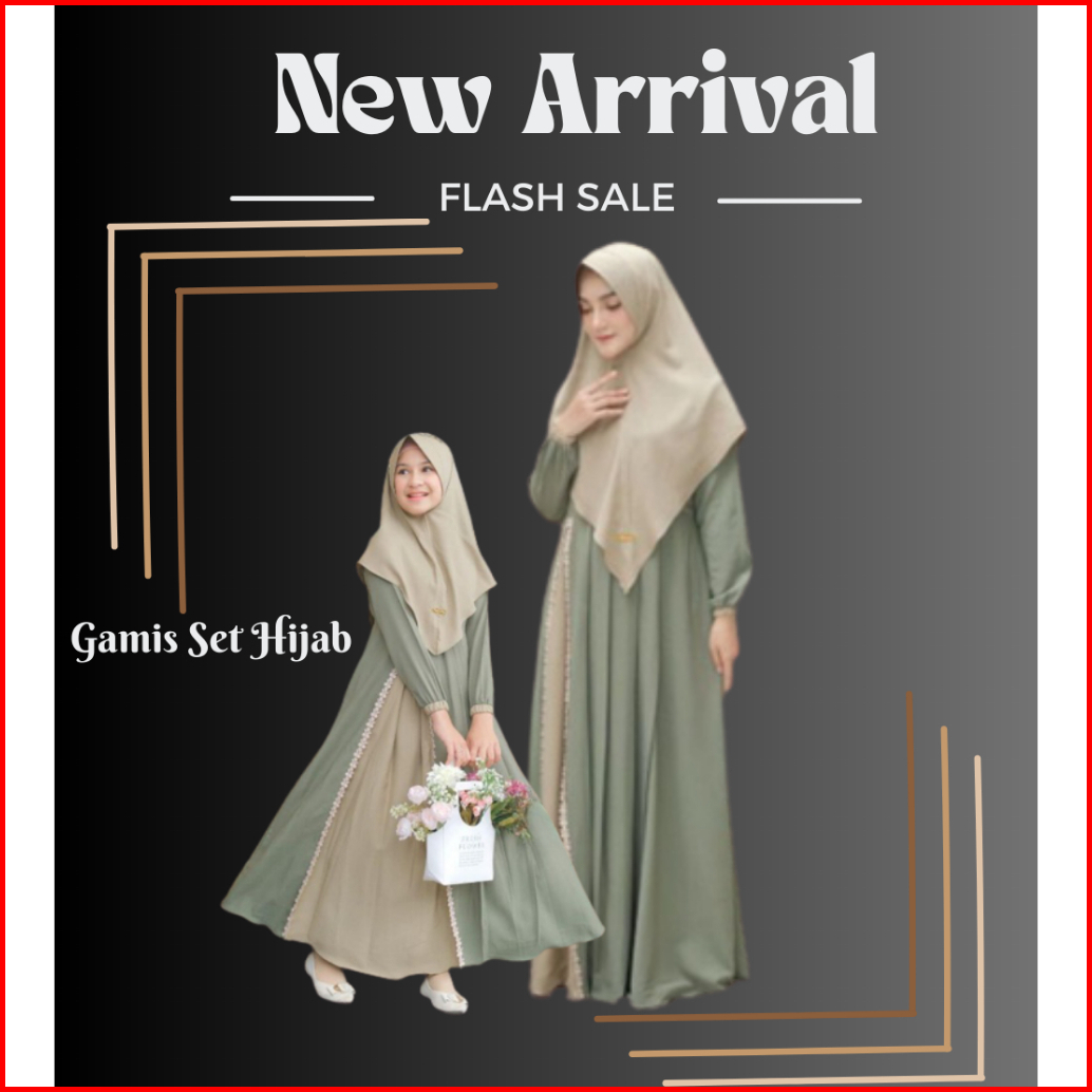 Gamis Couple Ibu Anak Perempuan Terbaru 2024 Baju Muslim Anak Perempuan Set Hijab