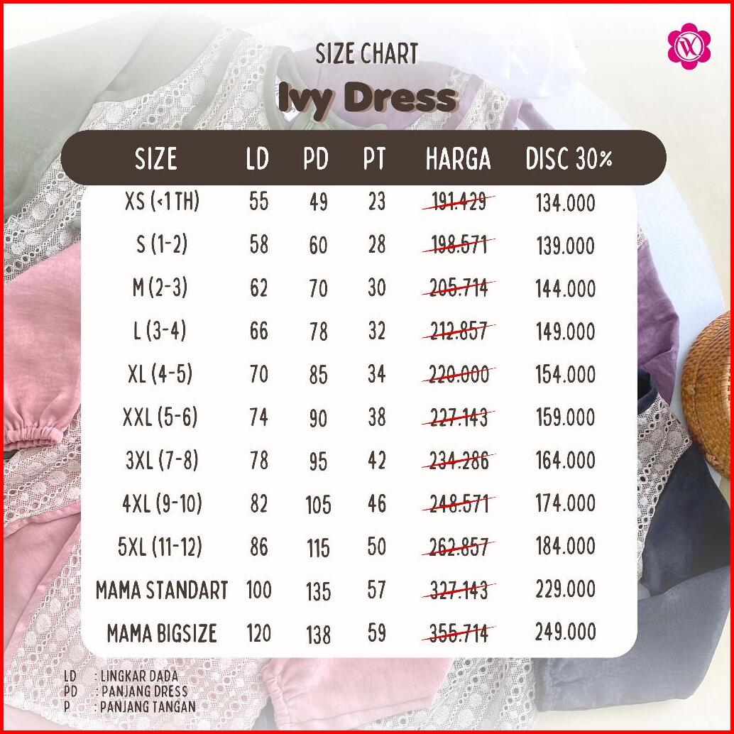 Ivaniar Ivy Dress Dress Couple Mewah Ibu Dan Anak Perempuan 1-12 Tahun