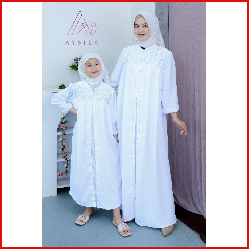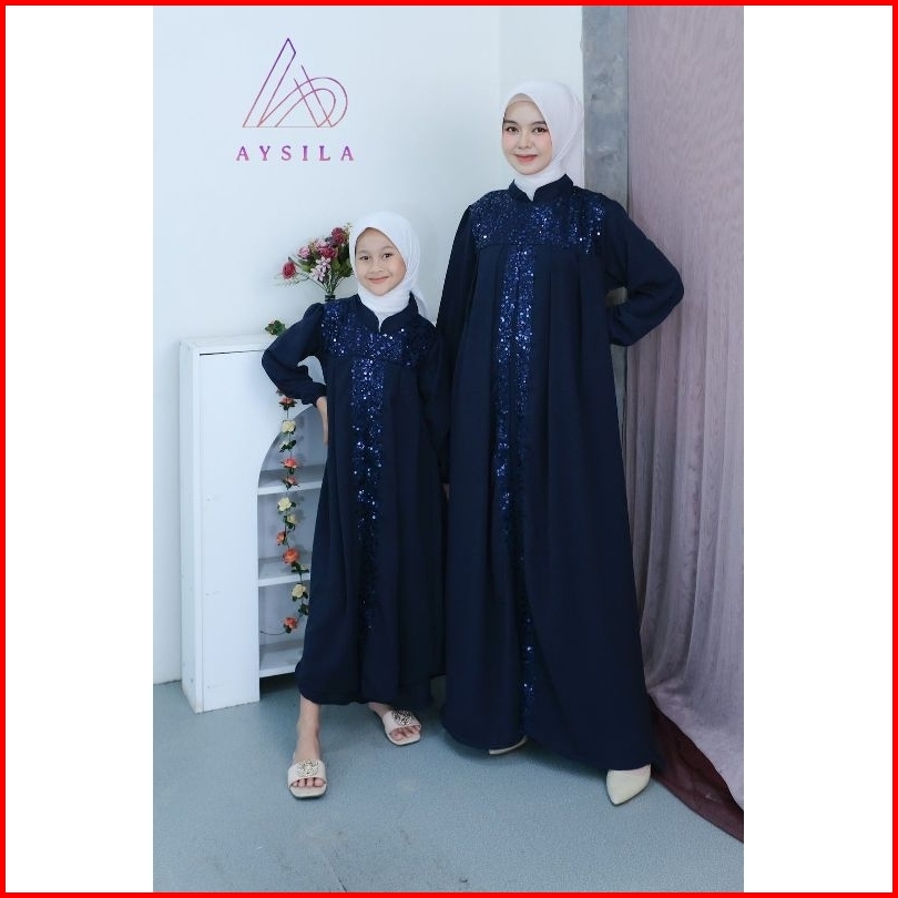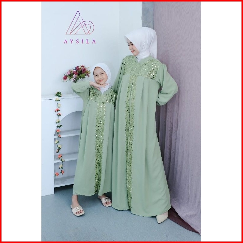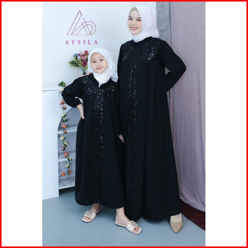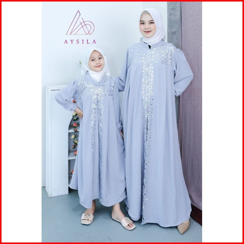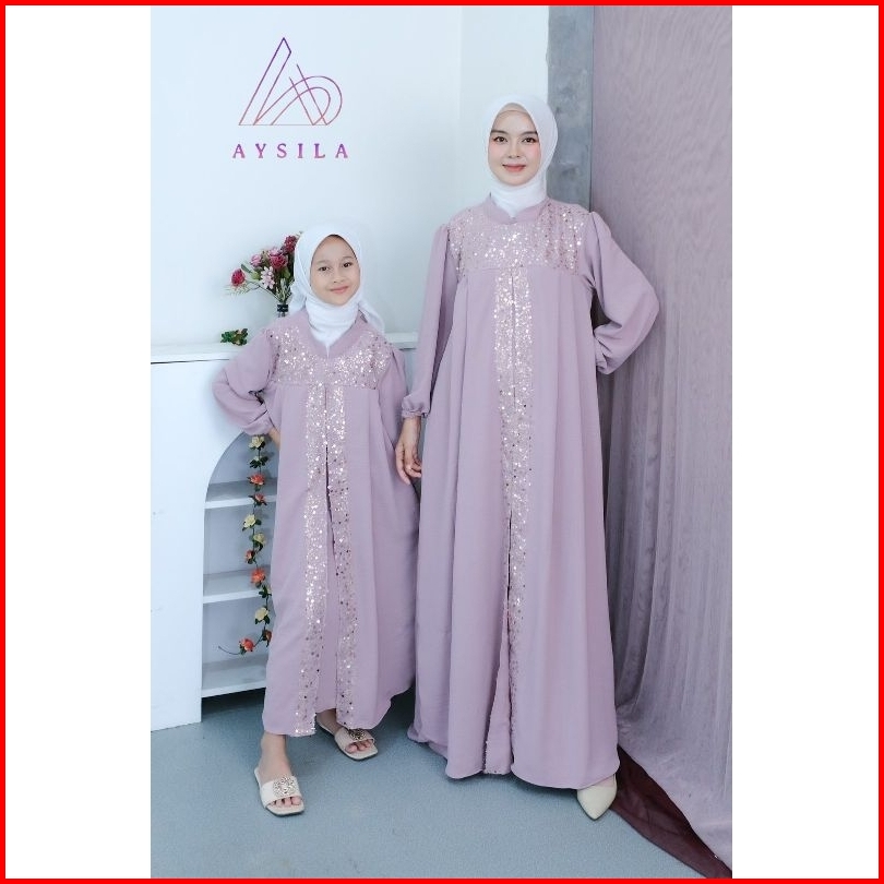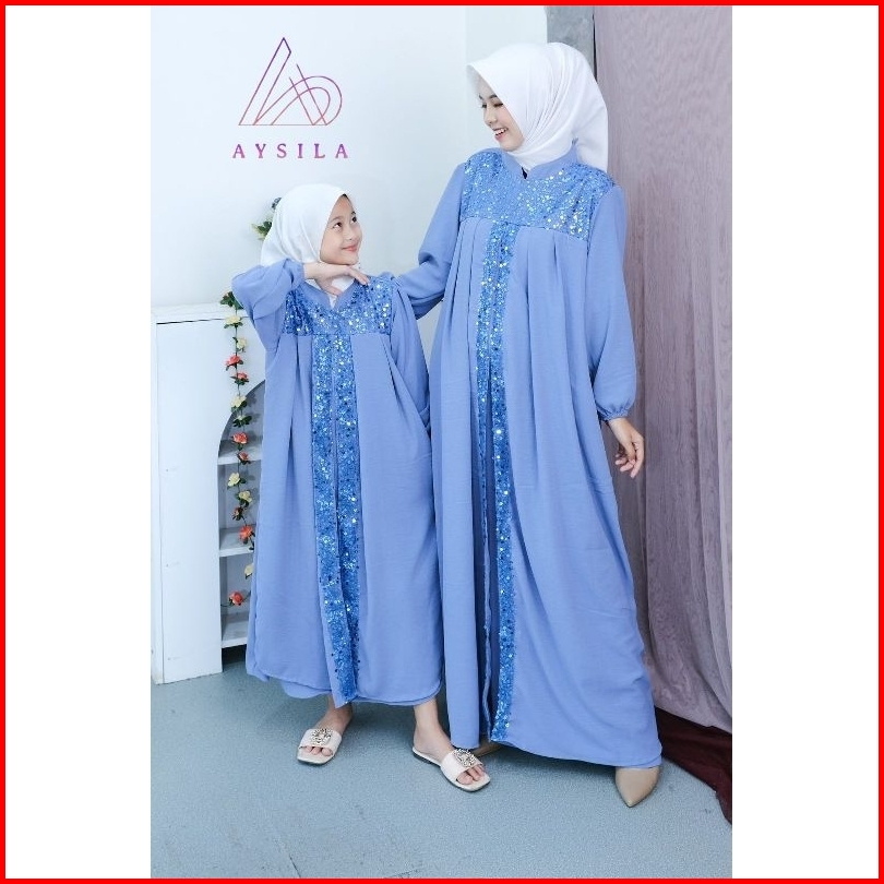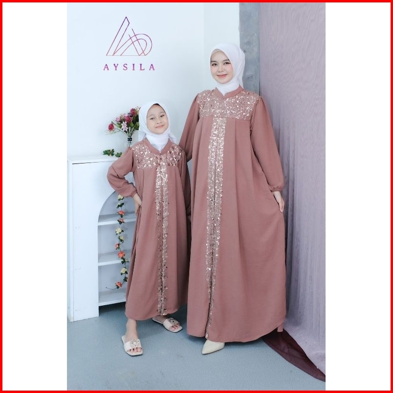 Queensha Zelindra Aila Mom And Kids Gamis Couple Ibu Dan Anak Matt Cringkel Airflow Mix Tile Sequin Gamis 2024 Terbaru