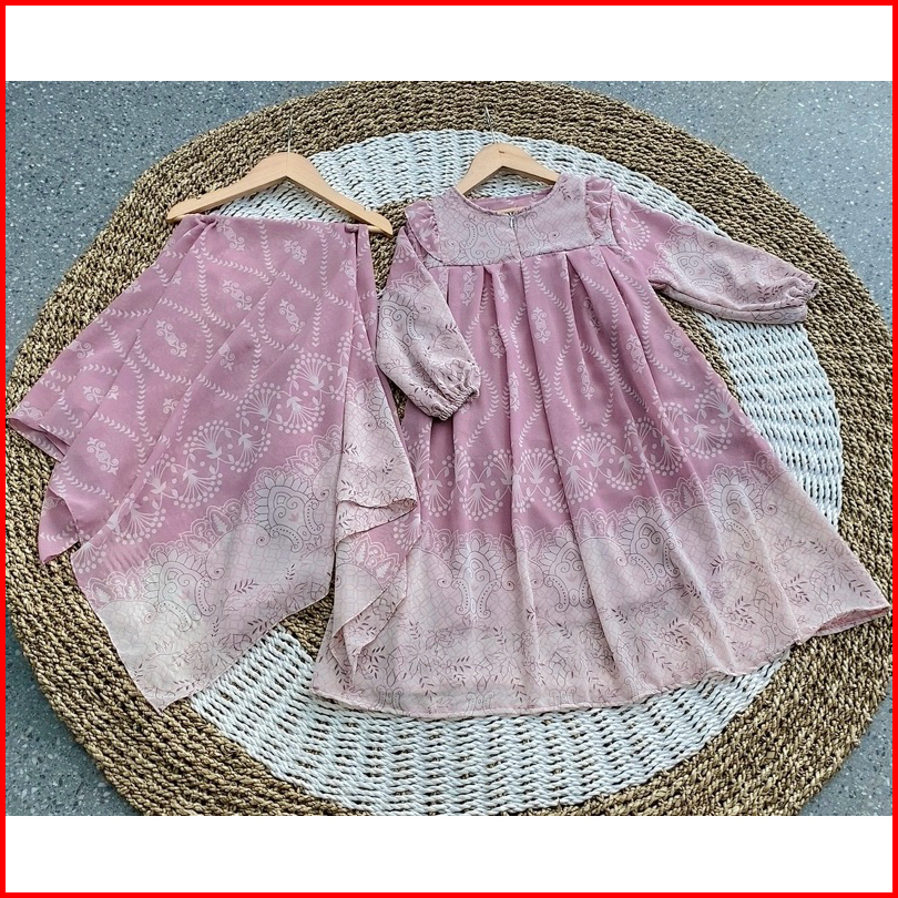 Gamis Couple Nadhira Ibu Dan Anak Usia 3-15 Tahun Free Hijab Segiempat