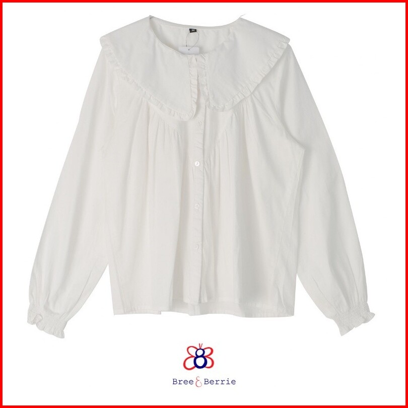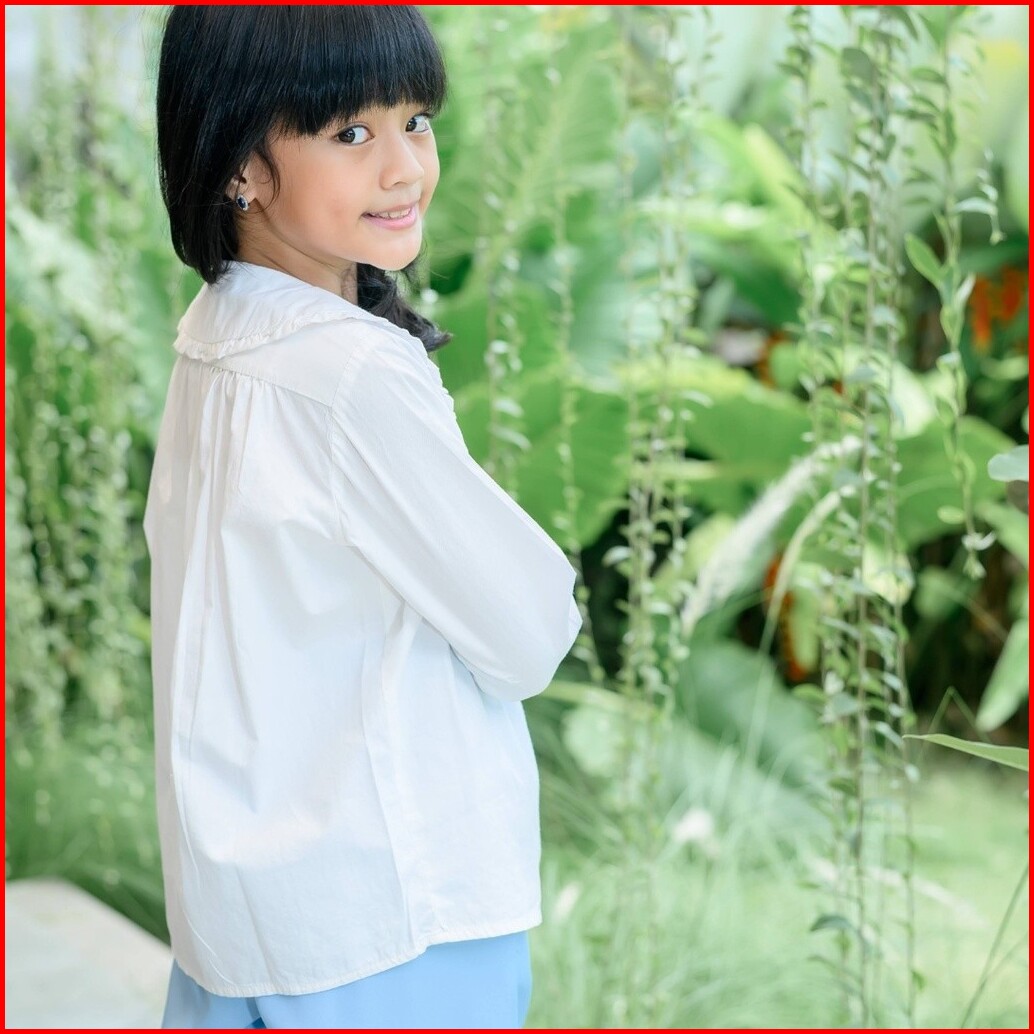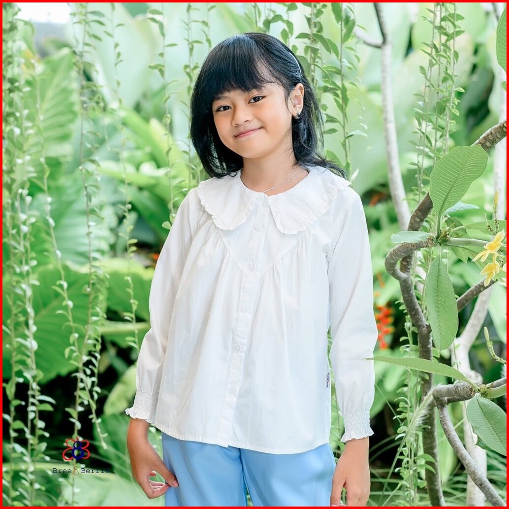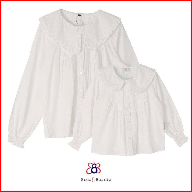 Bree Berrie Kemeja Putih Krag Lebar Couple Ibu Dan Anak Katun-amerra