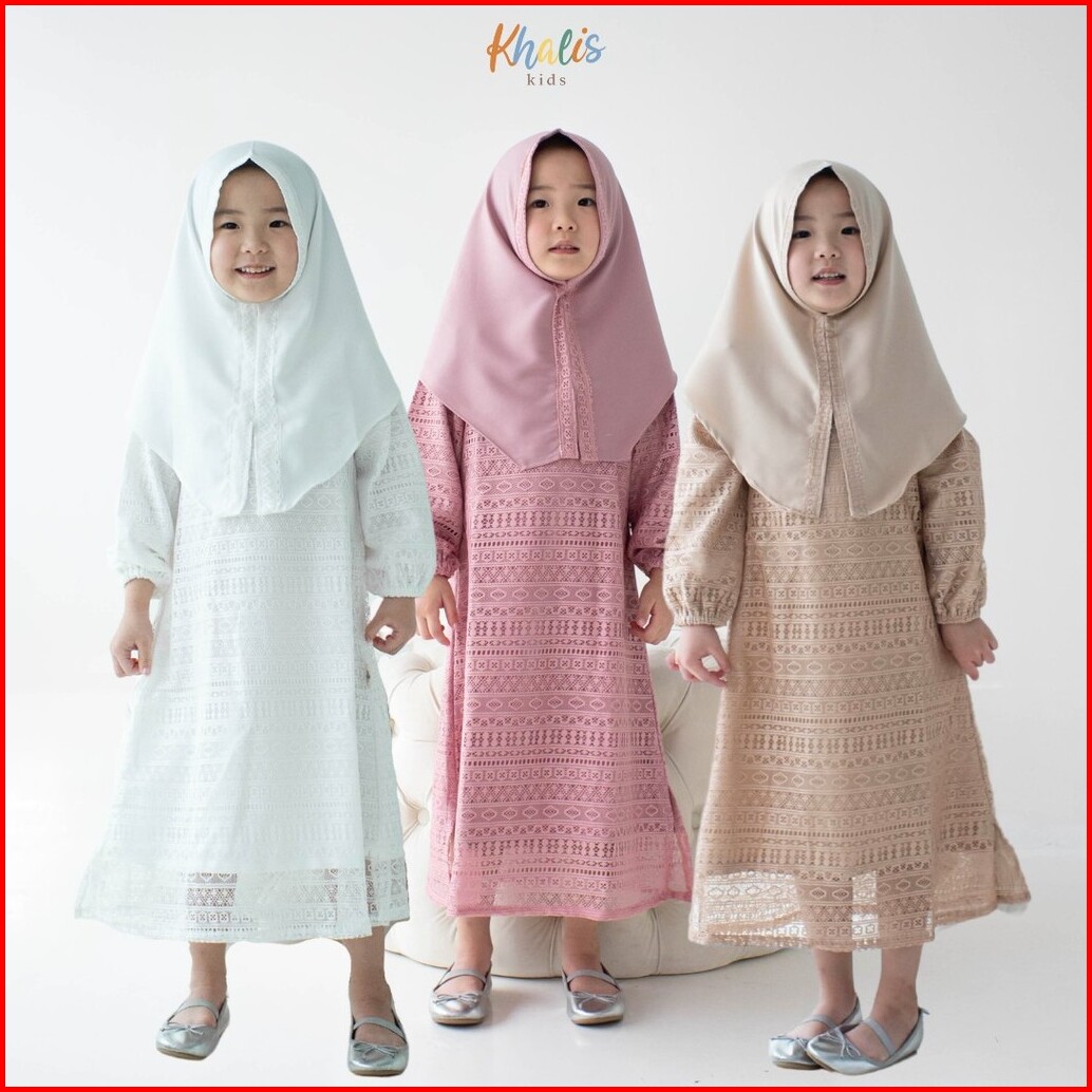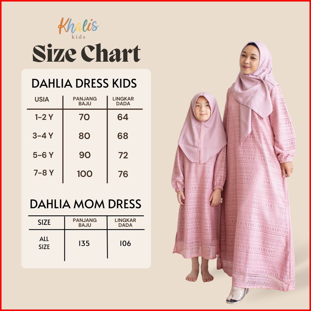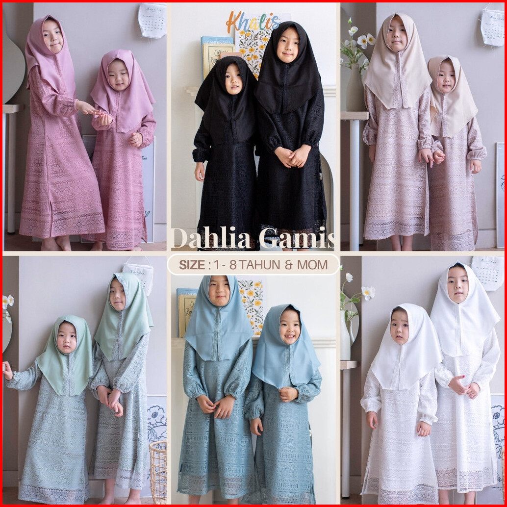 Khalis Kids Dahlia Dress Gamis Baju Dress Gamis Couple Ibu Anak Perempuan 1-8 Tahun