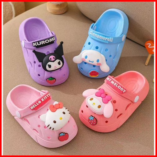 Sandal Sepatu Anak Import Crocs 3d Hello Kitty Kuromi Cinamon My Melody